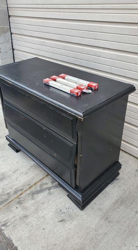 Black Dresser Project Piece, Includes New Rails, One Foot Needs to be Replaced