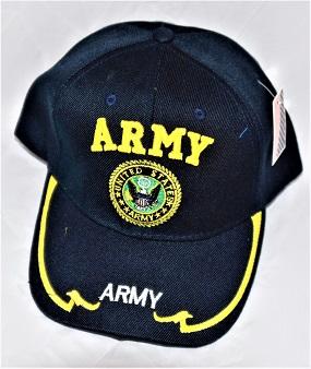 Black Embroidered U.S. Army Seal Ball Cap with Velcro Back These caps are designed and inspired by Soldiers and for Soldiers past, present, and future. Each hat pays respect to the US Army. The hats have a cloth and Velcro closure at the rear. The US Army Seal and the word “˜Army’ are embroidered on the front face. Additionally, there is additional embroidery on the bill that reads “˜Army’ and a satin-stitch embellishment on each side. This hat is perfect for soldiers, veterans, family of service members and/or any proud/patriotic man or woman. Wear it everyday.