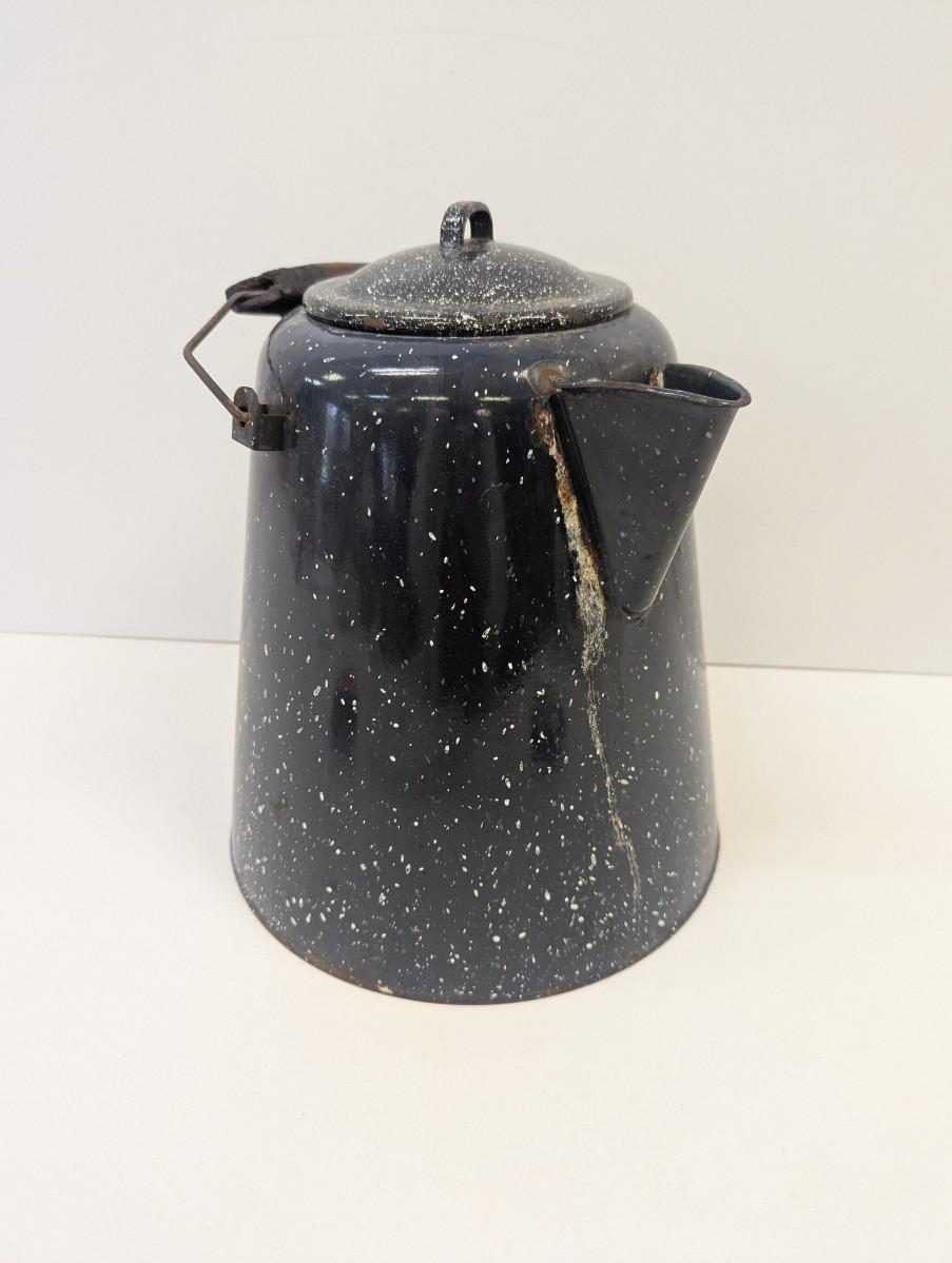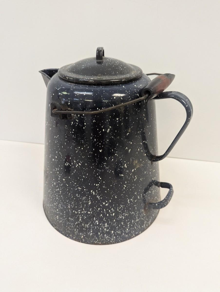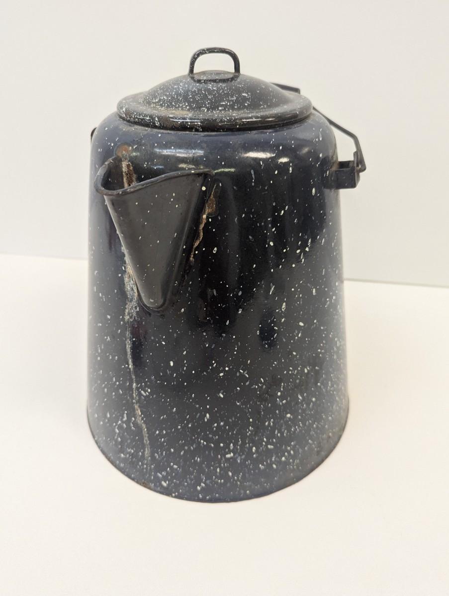 Black Enamel Speckled Coffee Pot Approx 12" Tall