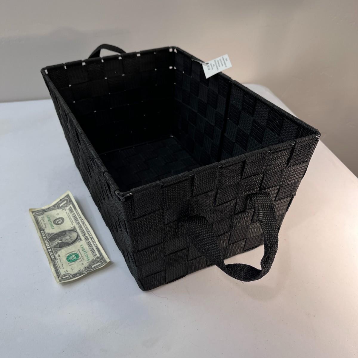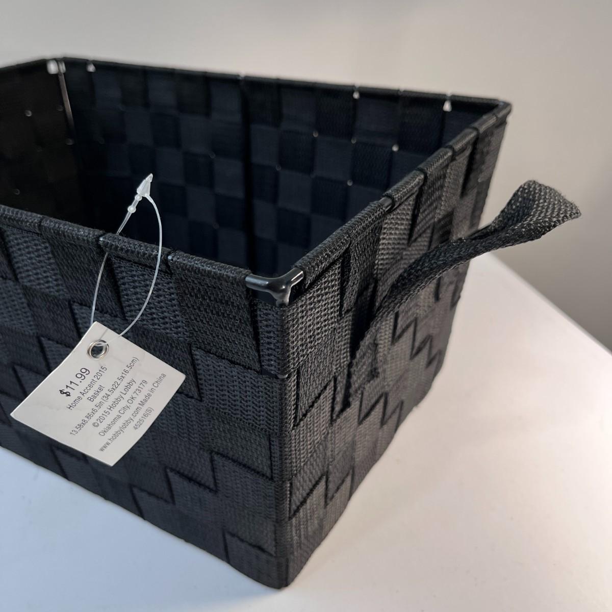 BLACK FABRIC WEAVE BASKET WITH HANDLES