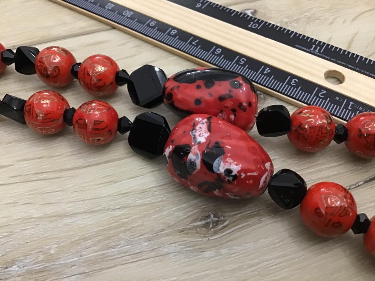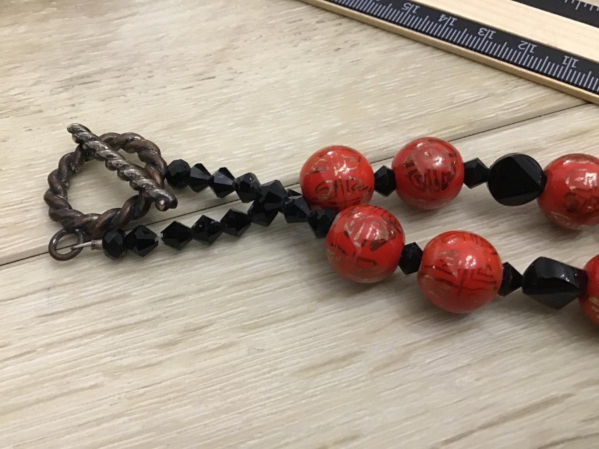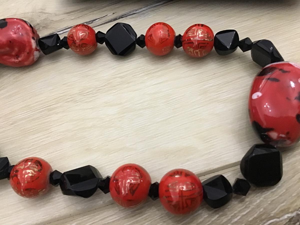 Black Fauceted Glass Red Asian Beads Necklace. Unique