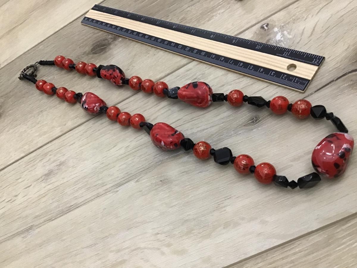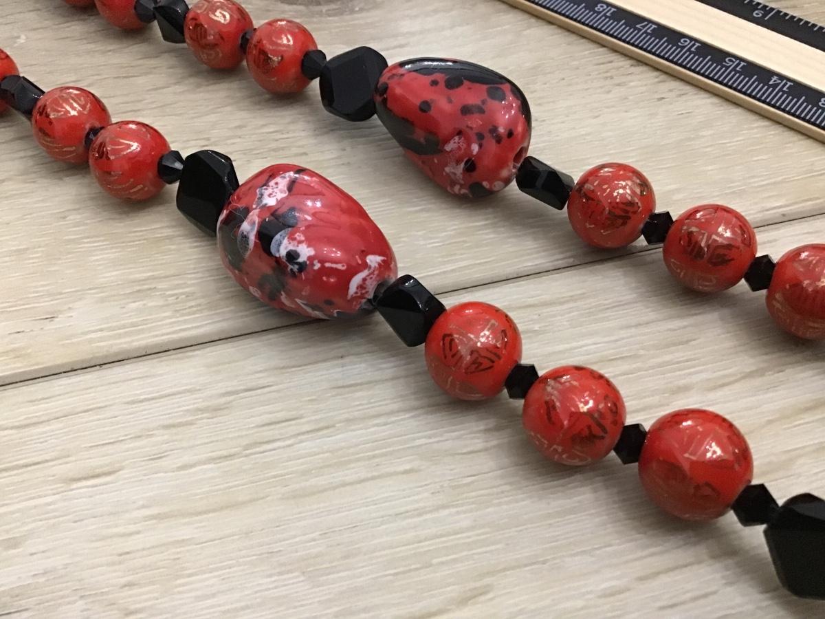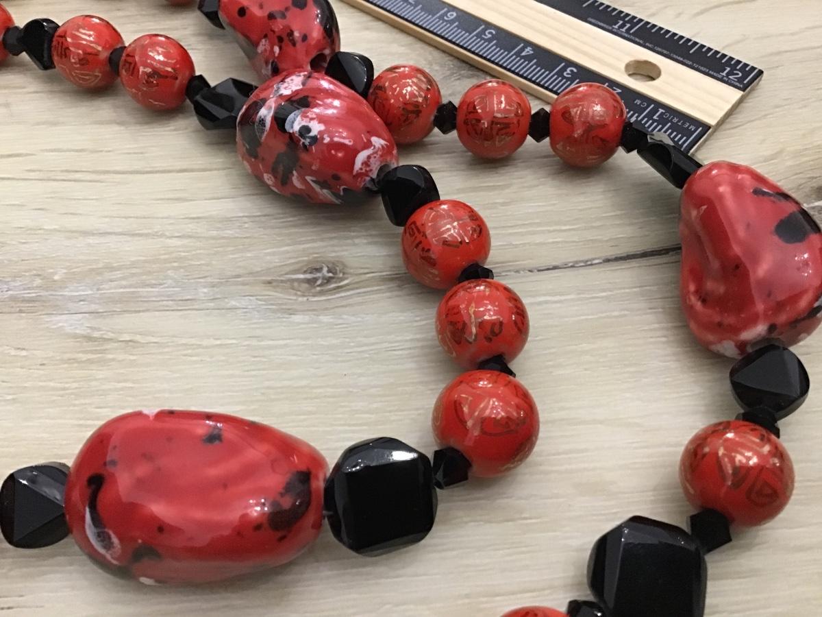 Black Fauceted Glass Red Asian Beads Necklace. Unique