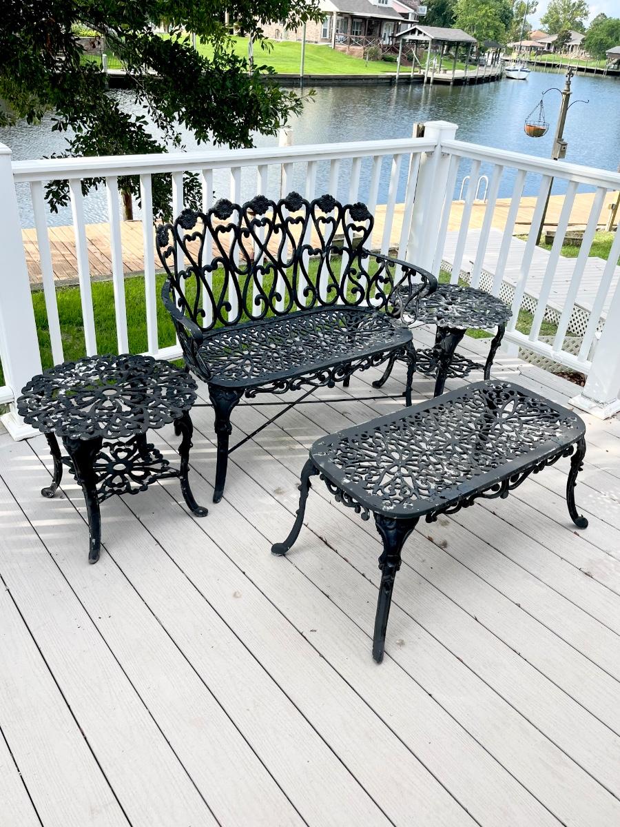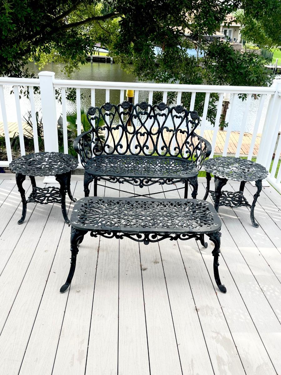 Black Floral Cast Aluminum Four (4) Piece Outdoor Set