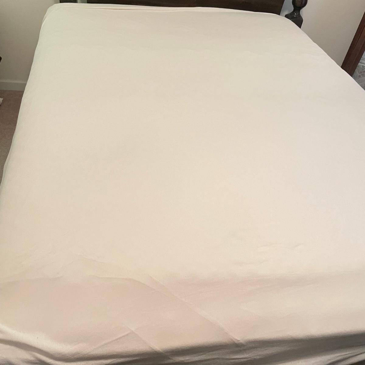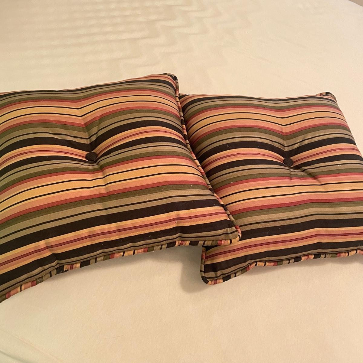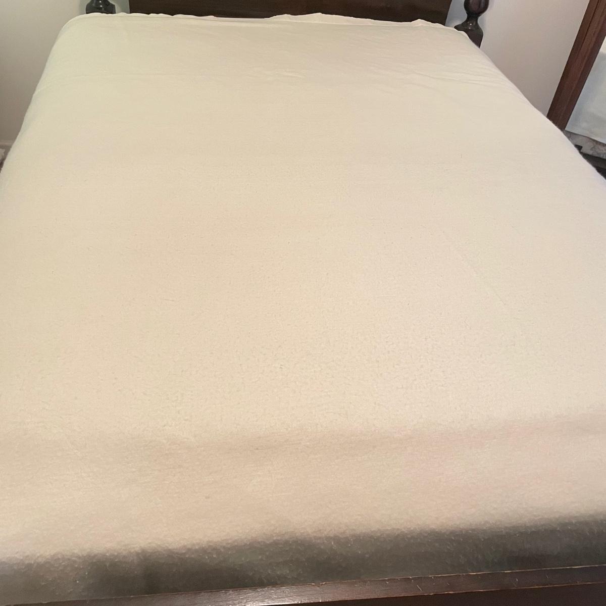 This queen size comforter is very elegant. This lot comes with the matching pillow cases, and the decorative striped pillows. The Winning bidder may take the 2 white pillows on the bed as well as the two pillows In the Black Floral Pillow Cases. Lot also includes white cotton top and fitted sheet set and acrylic blanket.