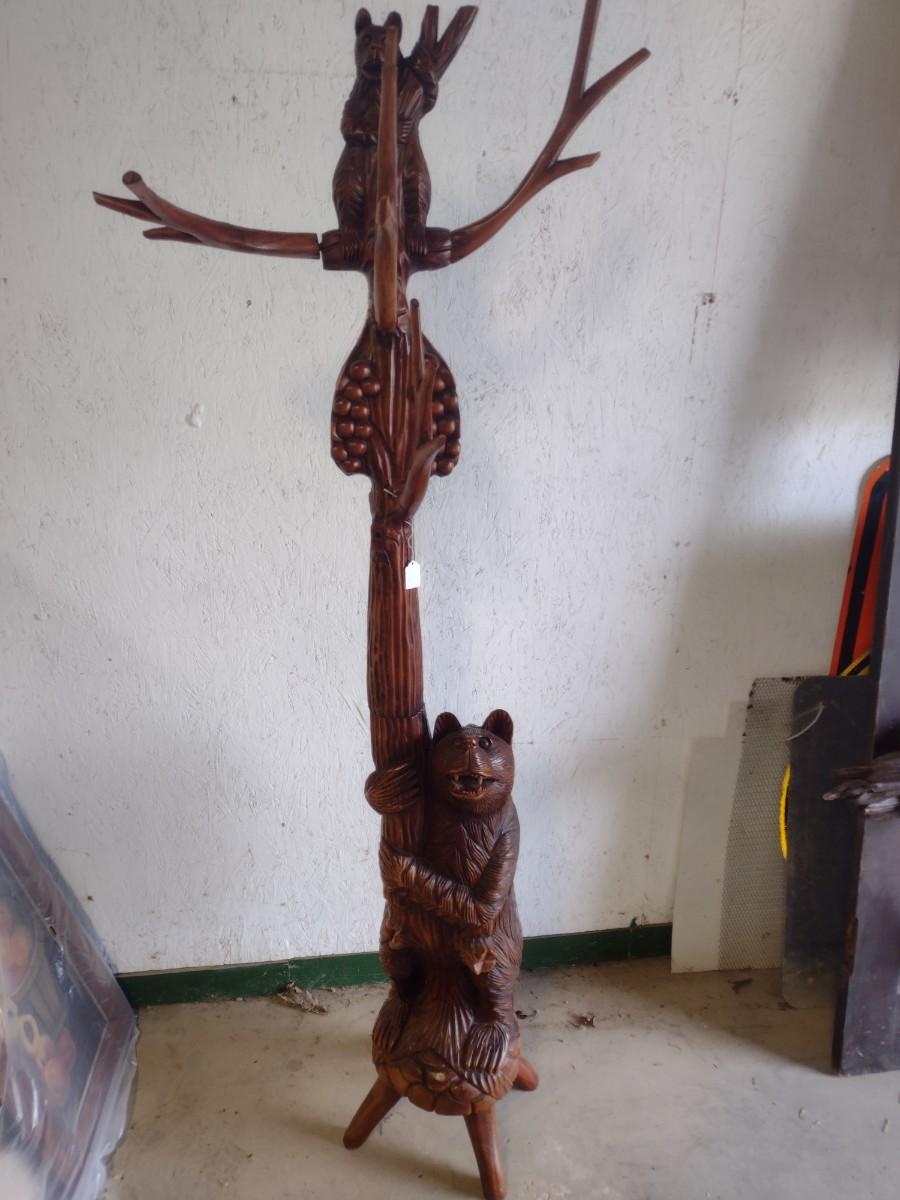 Black Forest Carved Wood Bear Themed Hall Tree Coat Stand. Some of the Branches will need to be repaired as shown