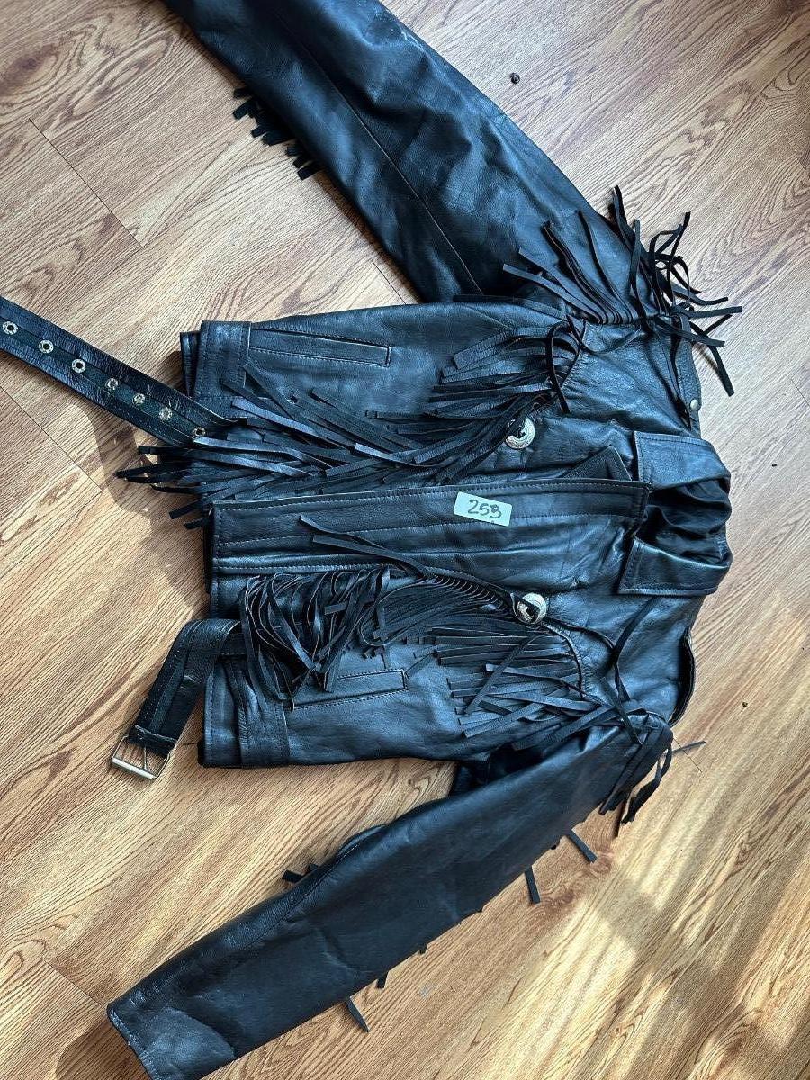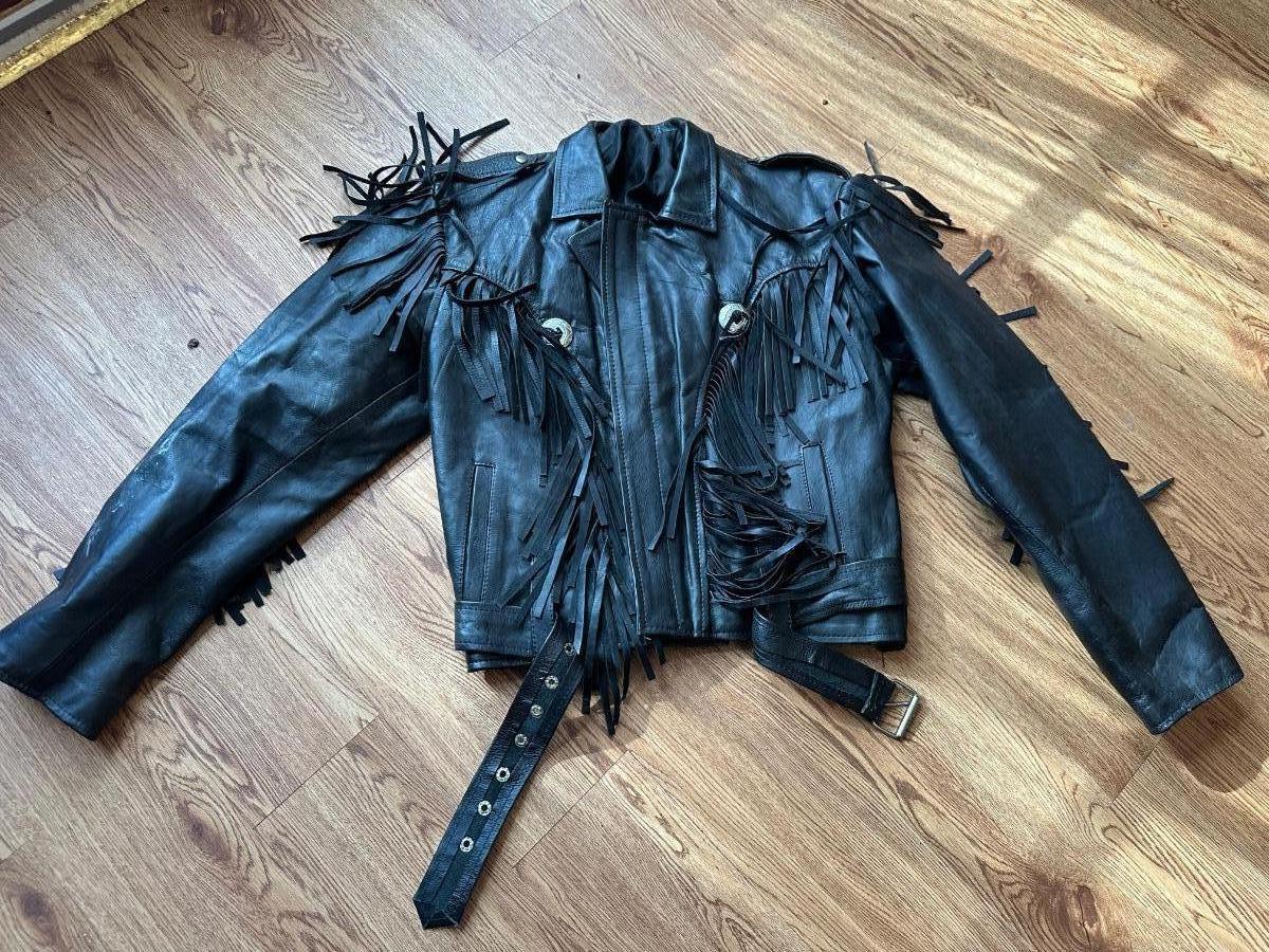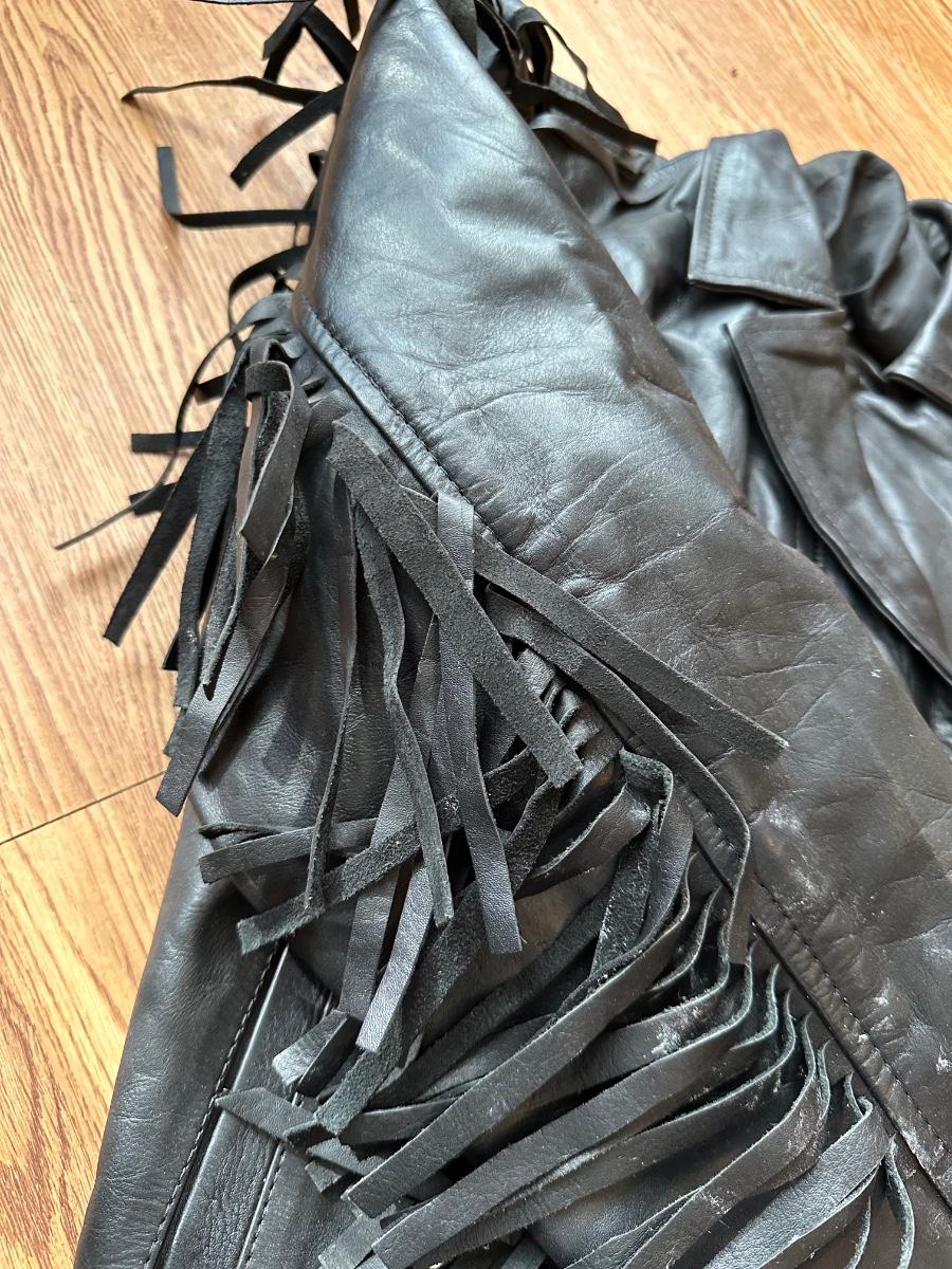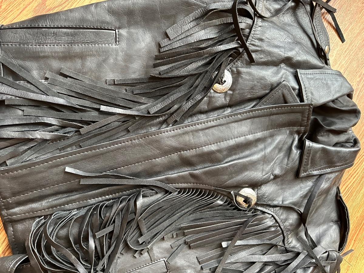 BLACK FRINGED LEATHER MEN'S JACKET, MADE IN PAKISTAN, AS PICTURED