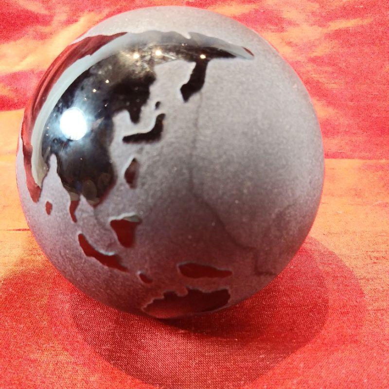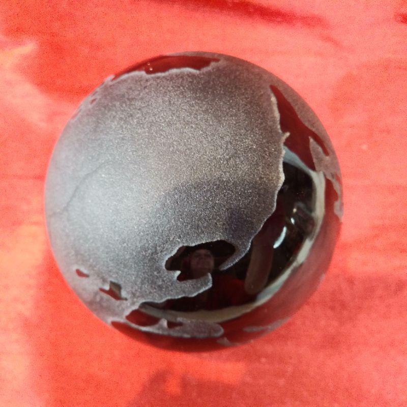 Want to own the world? Here it is as a Glass Globe Paperweight - Frosted Black Solid Glass. It is 3-inches in diameter X 2 1/2-inches tall. Very nice, would look great on your book shelf.