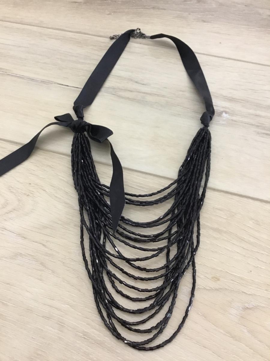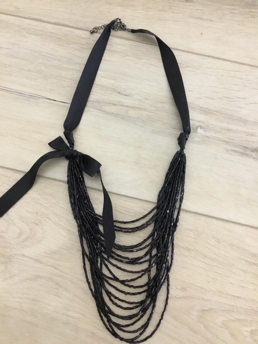Black glass bead with black silk ribbon necklace