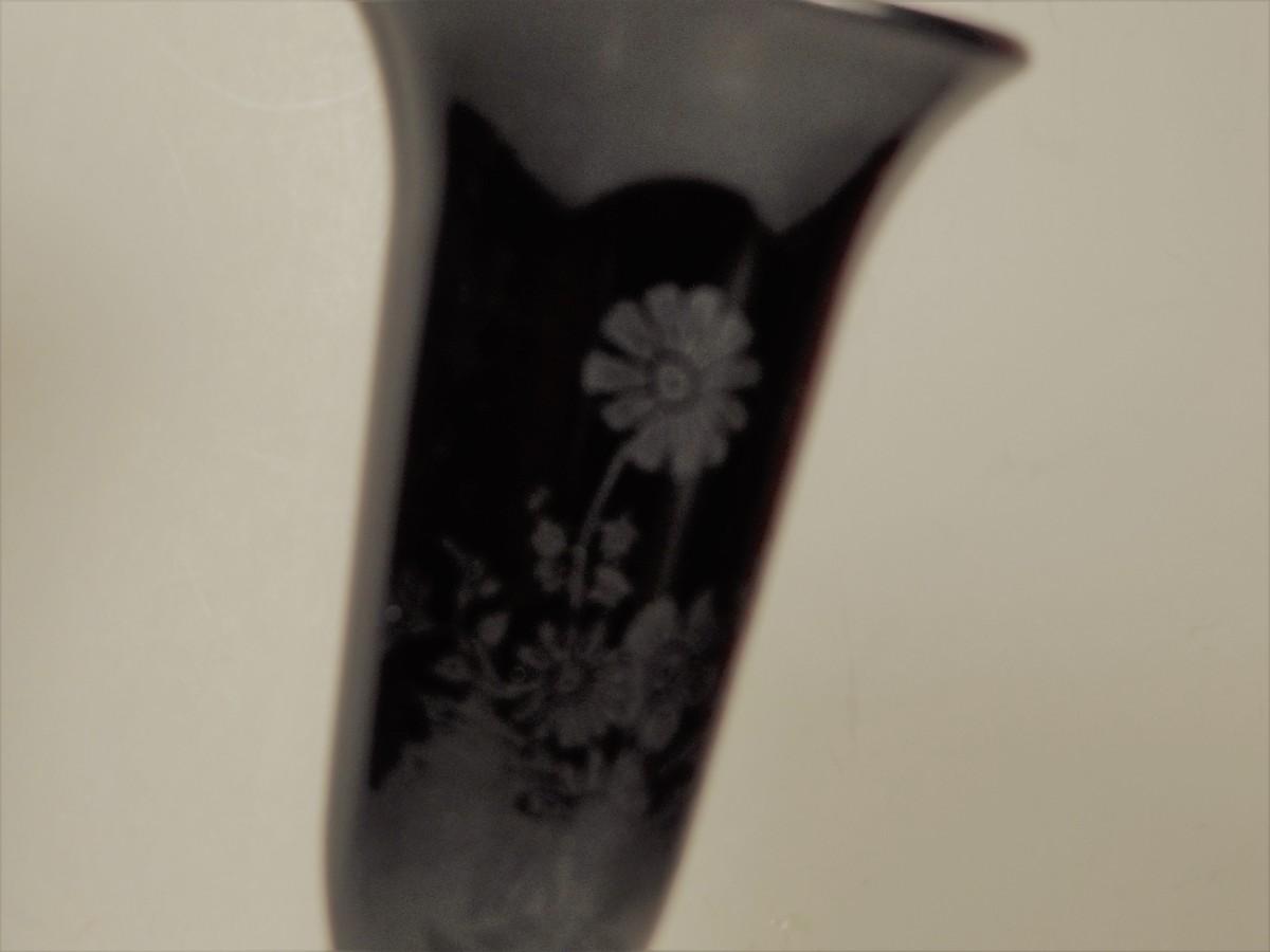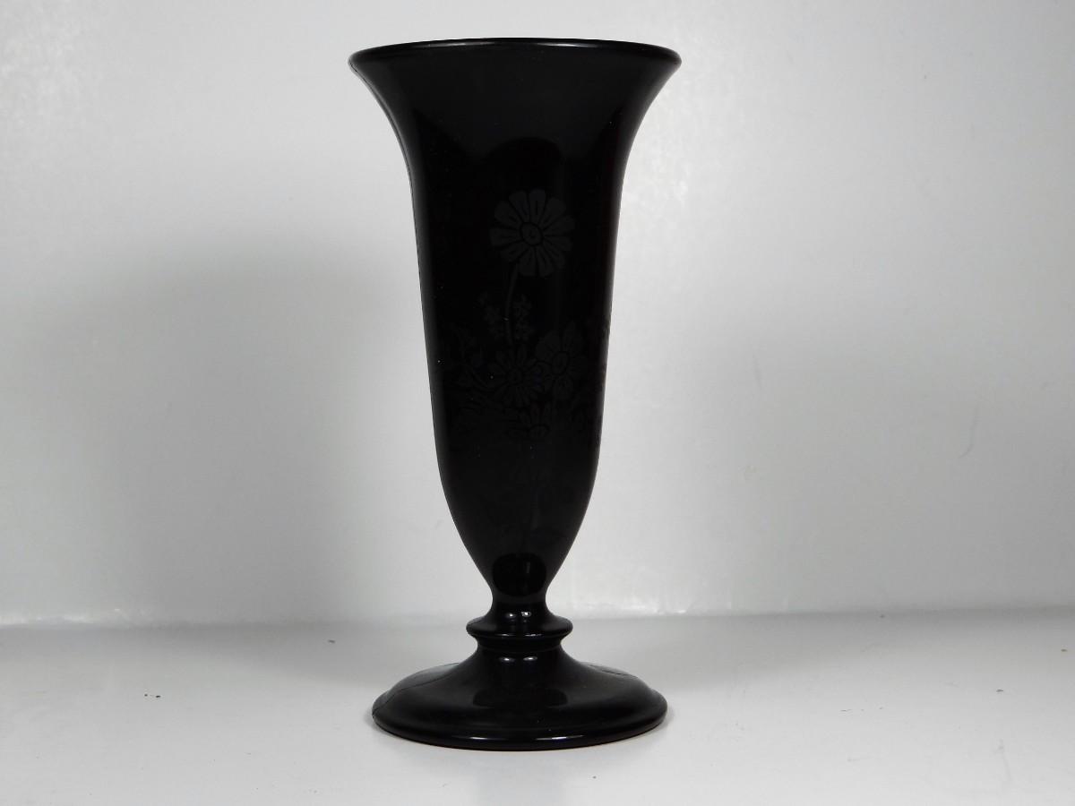 Black Glass Etched with Flowers Vase