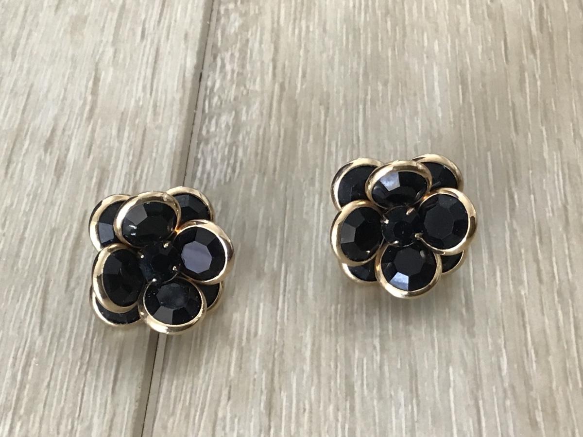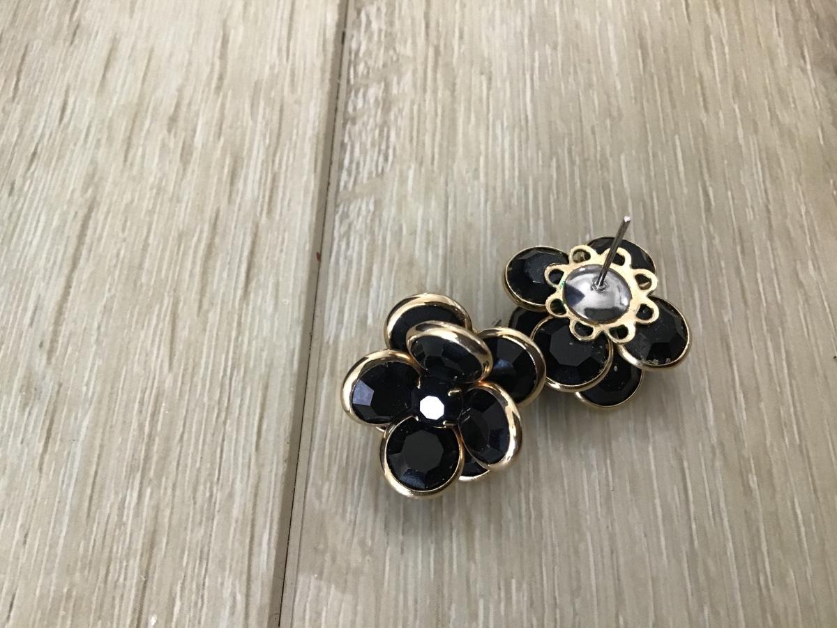 Black Glass Gold Trim Flower Earrings