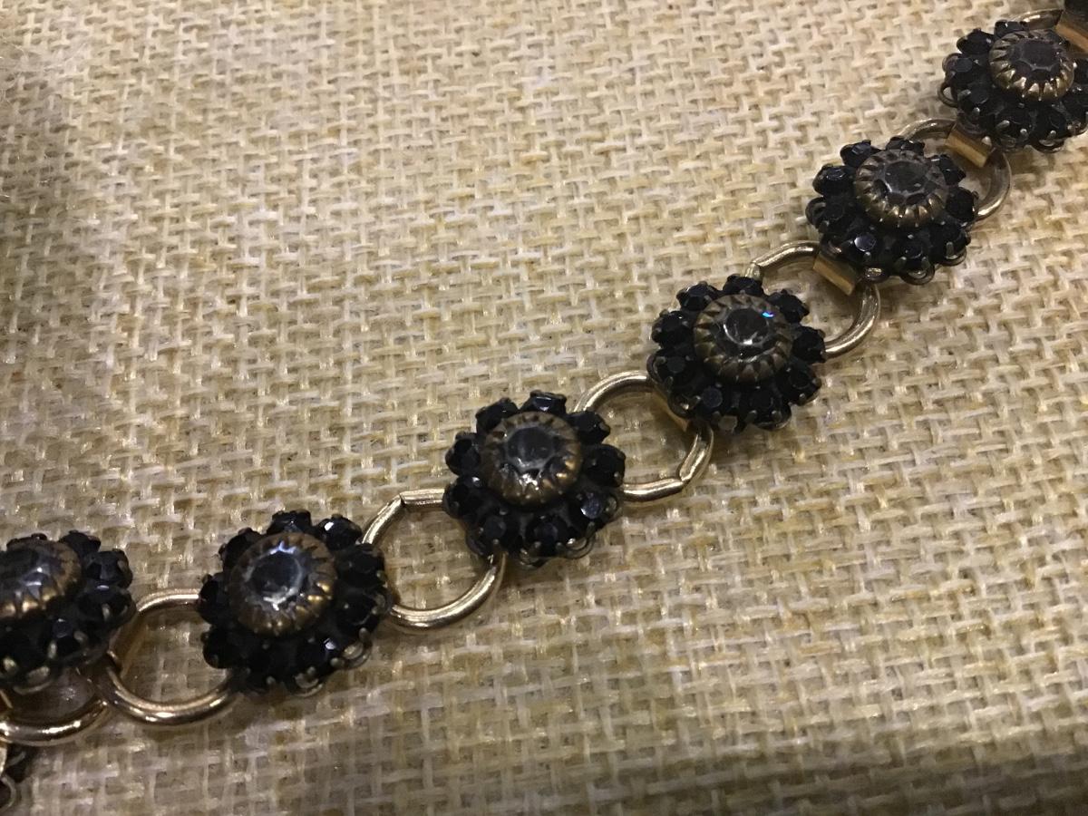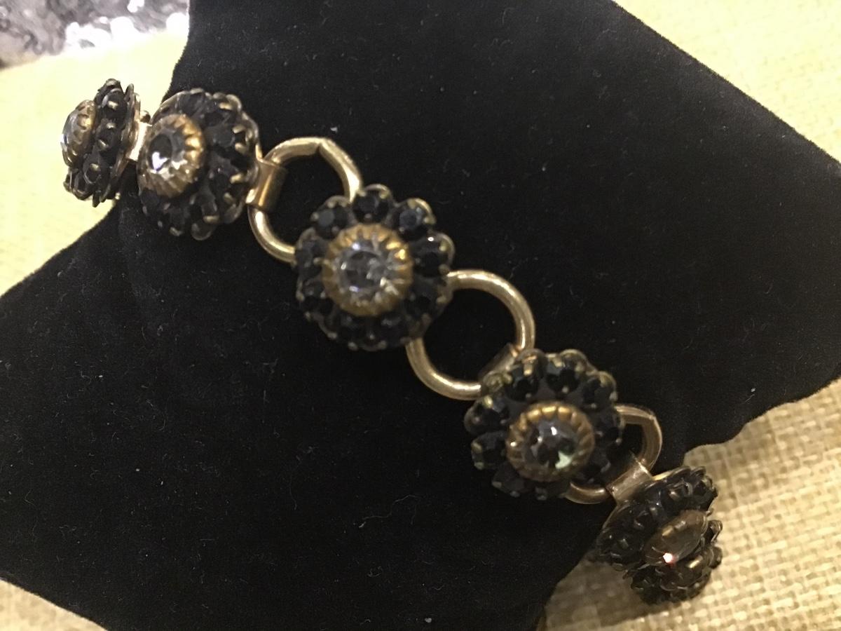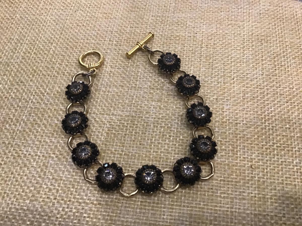 Black Glass Rhinestone Vintage Bracelet