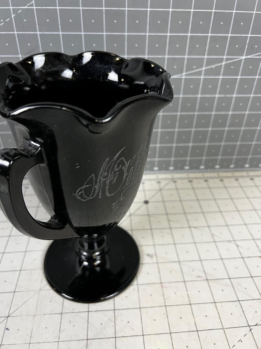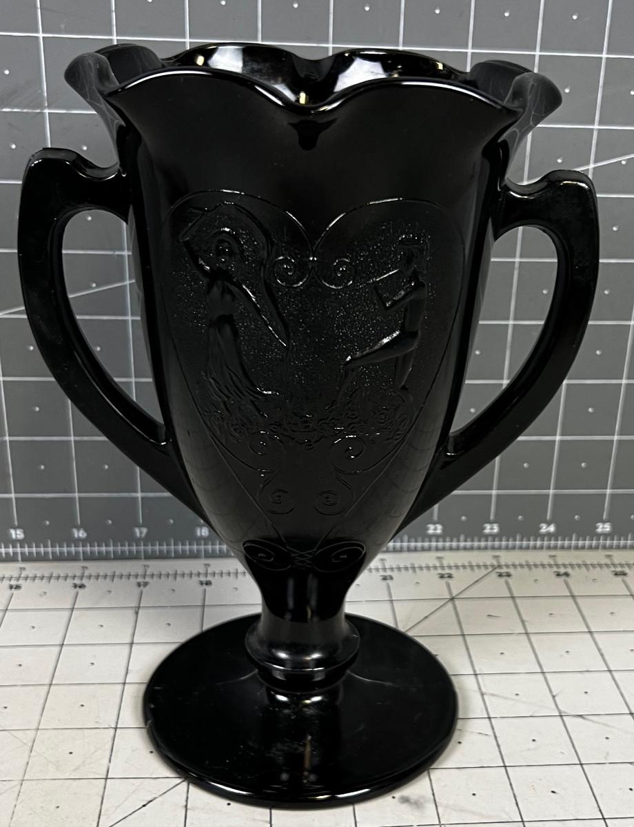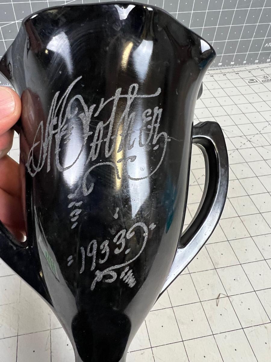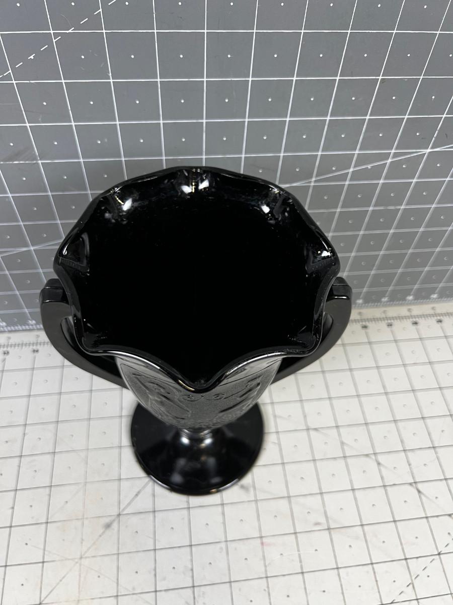 BLACK Glass Vase Marked 1933