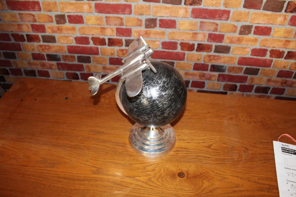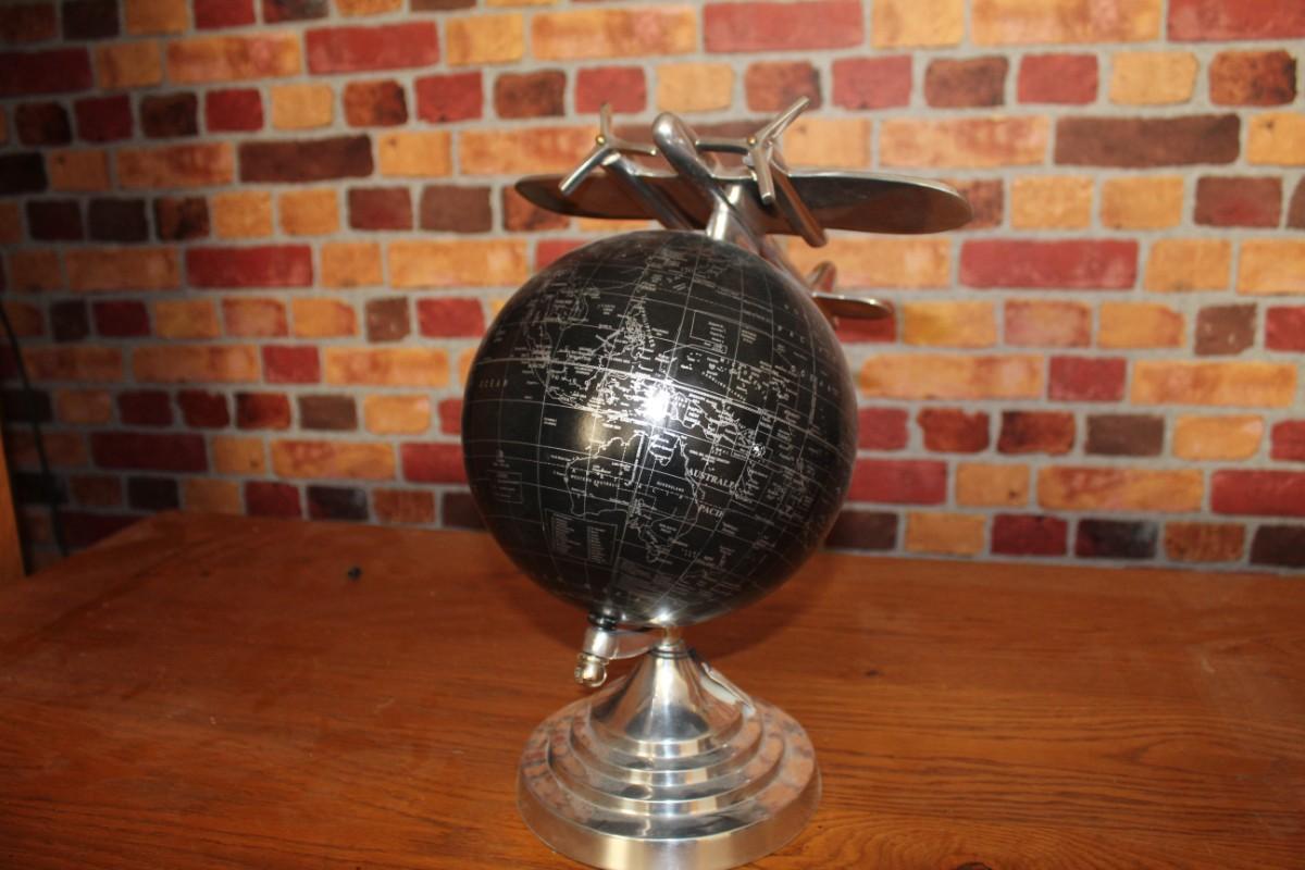 Black globe with airplane