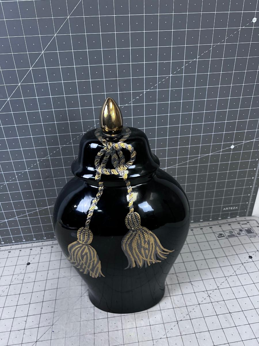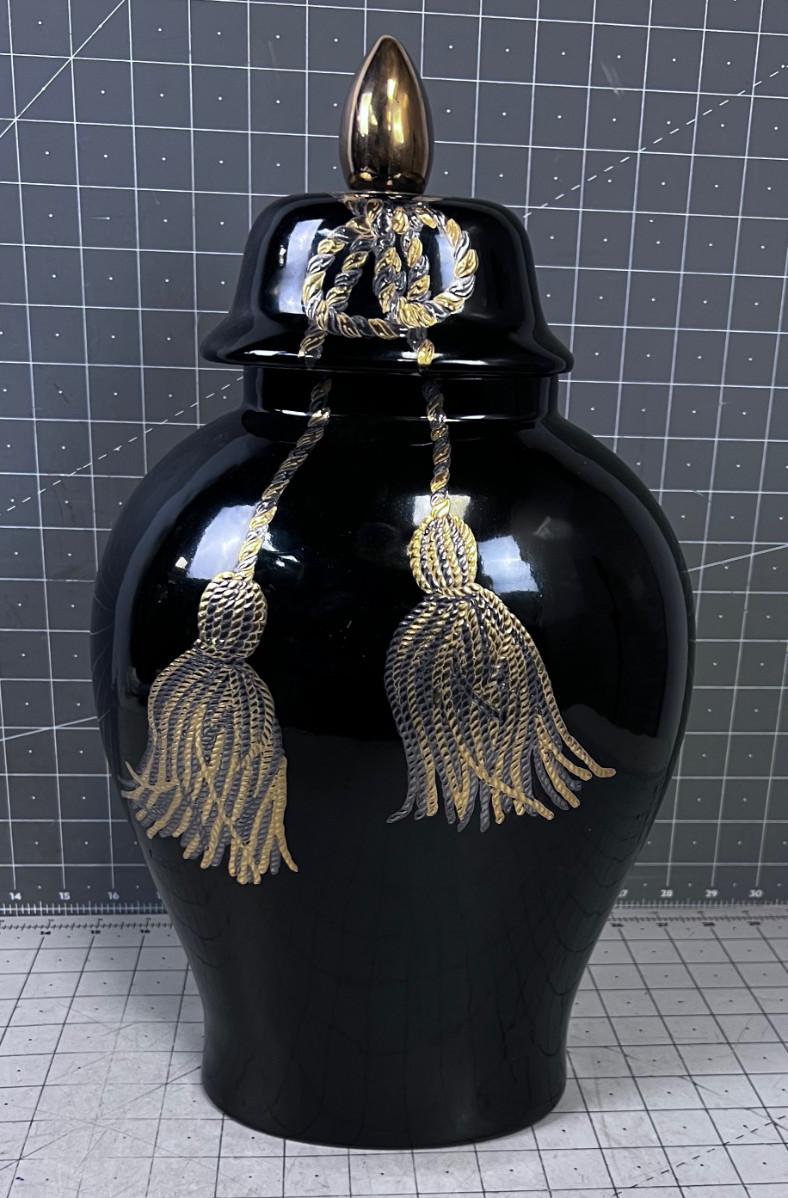 Black & Gold Tassel Decorative Lidded Jar