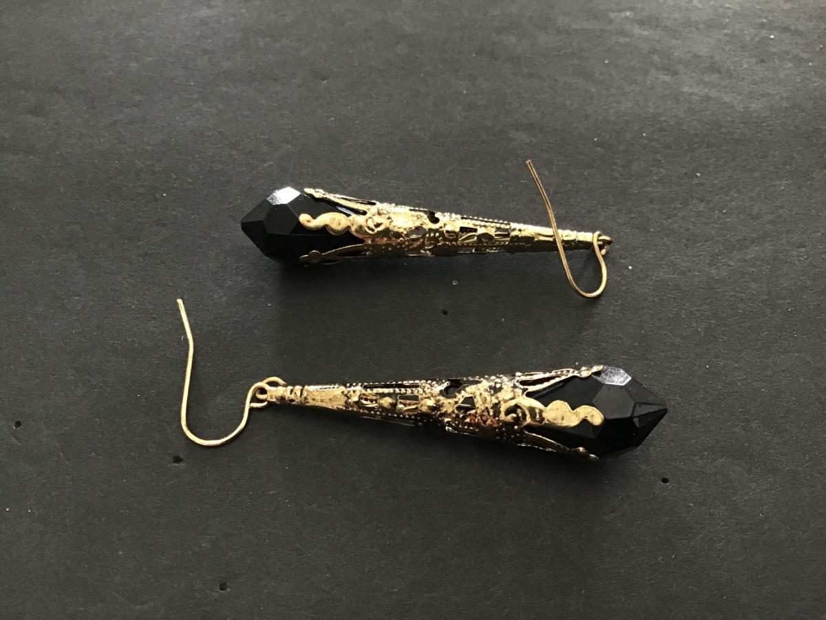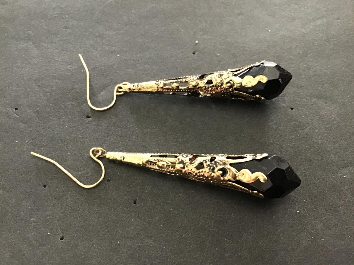 Black Gold Tone Fashion Earrings