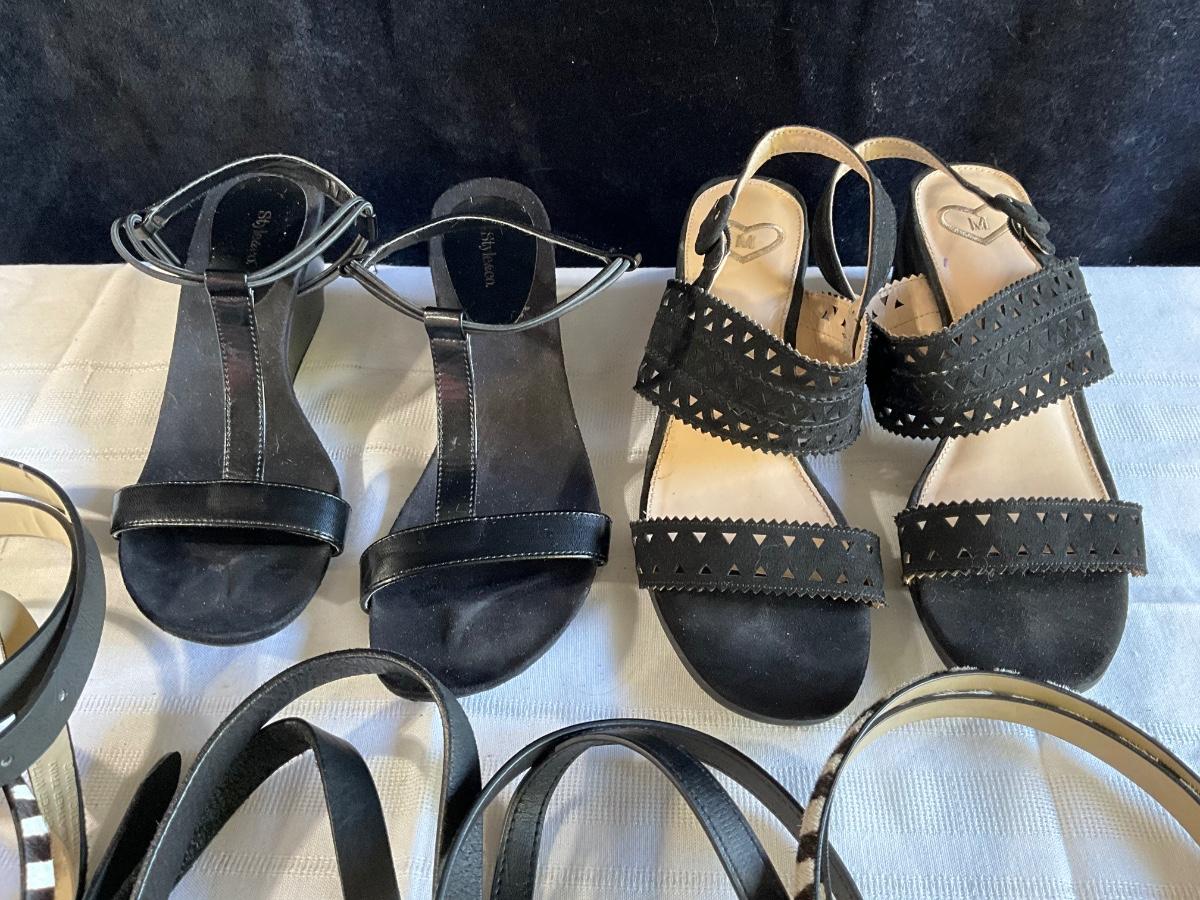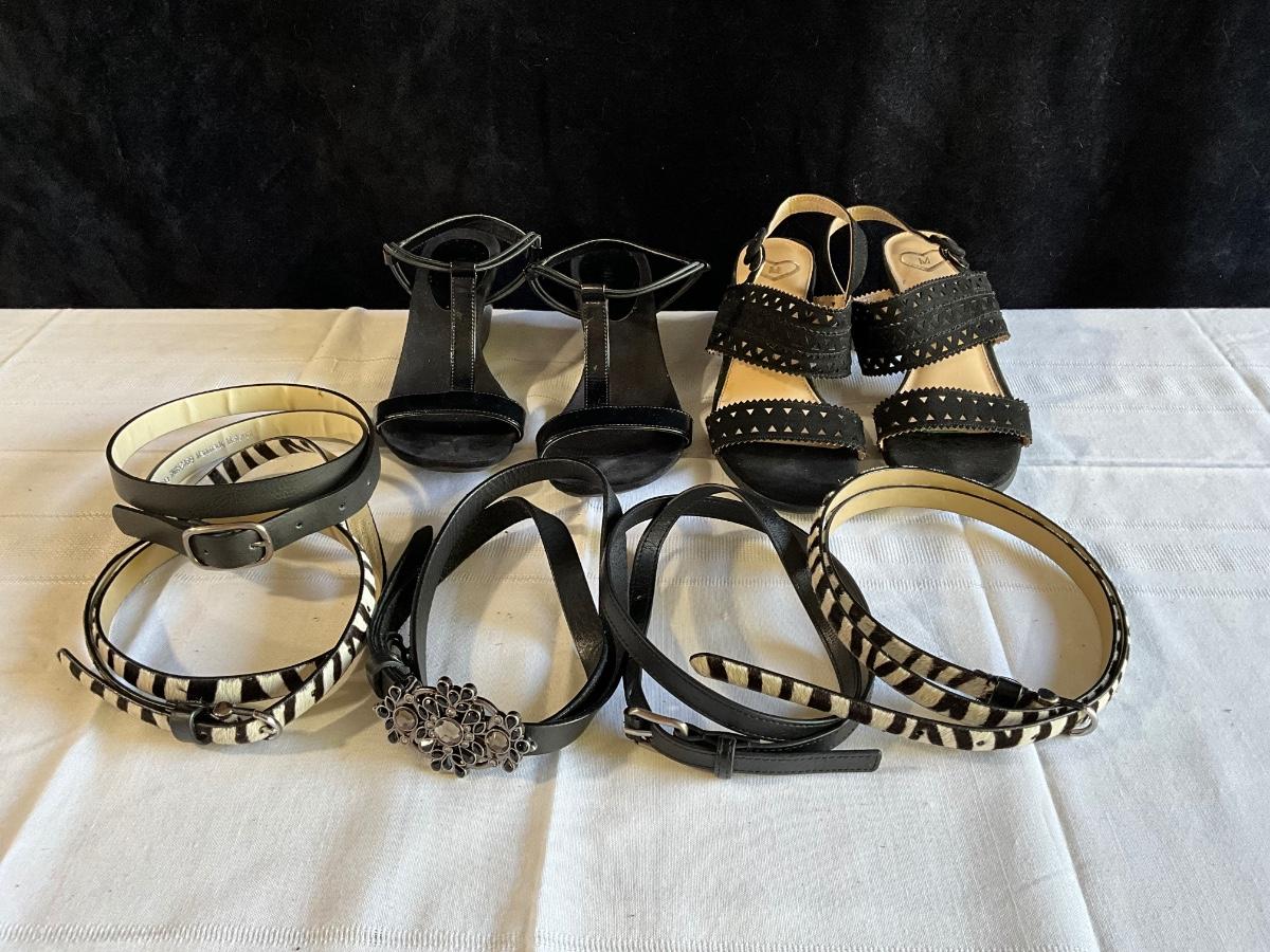 Black heels with belts, 8.5