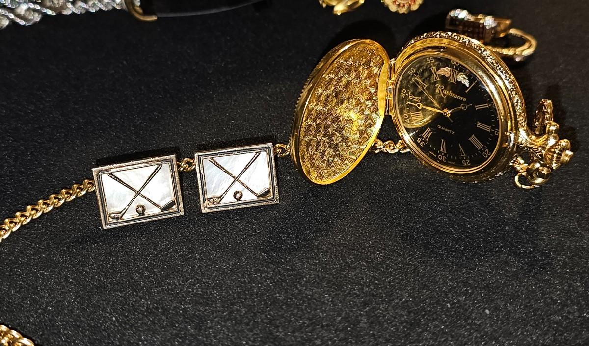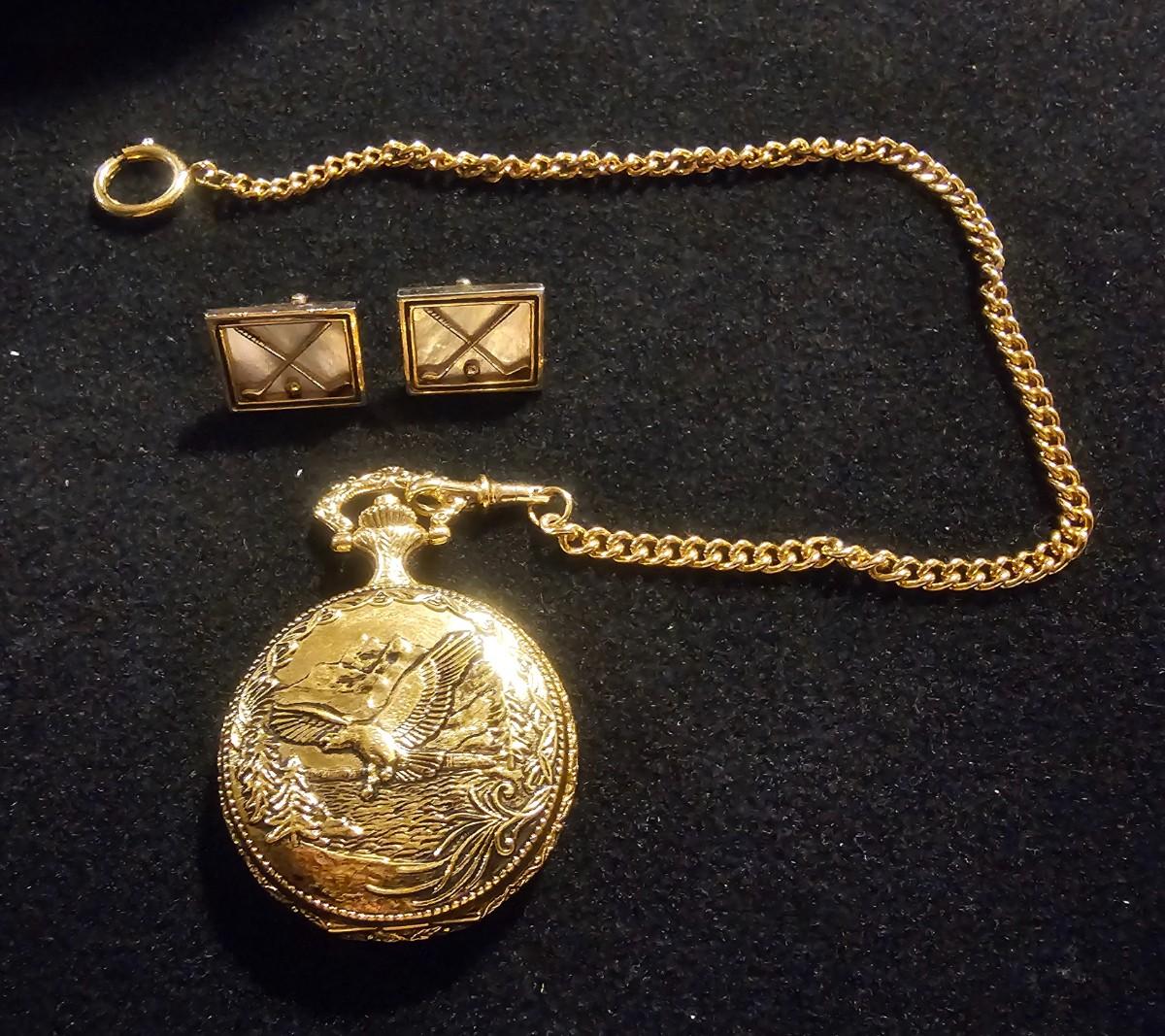 Black Hills Gold Rushmore Pocket Watch | Mother of Pearl Golf Cufflinks