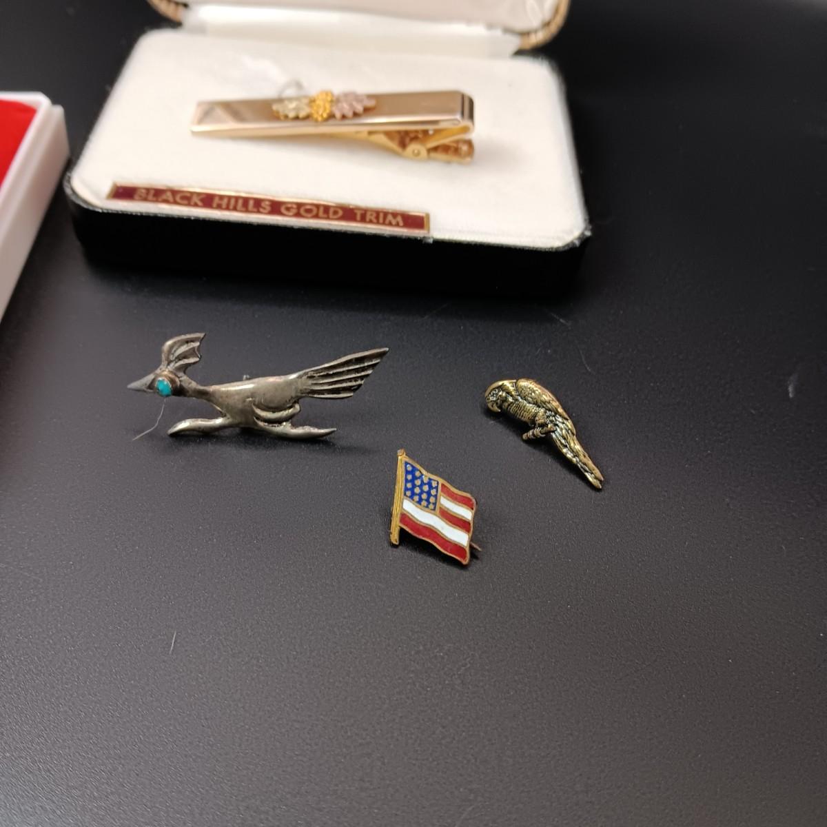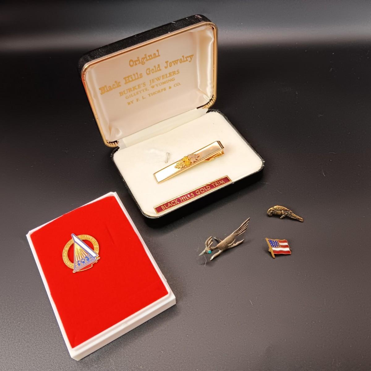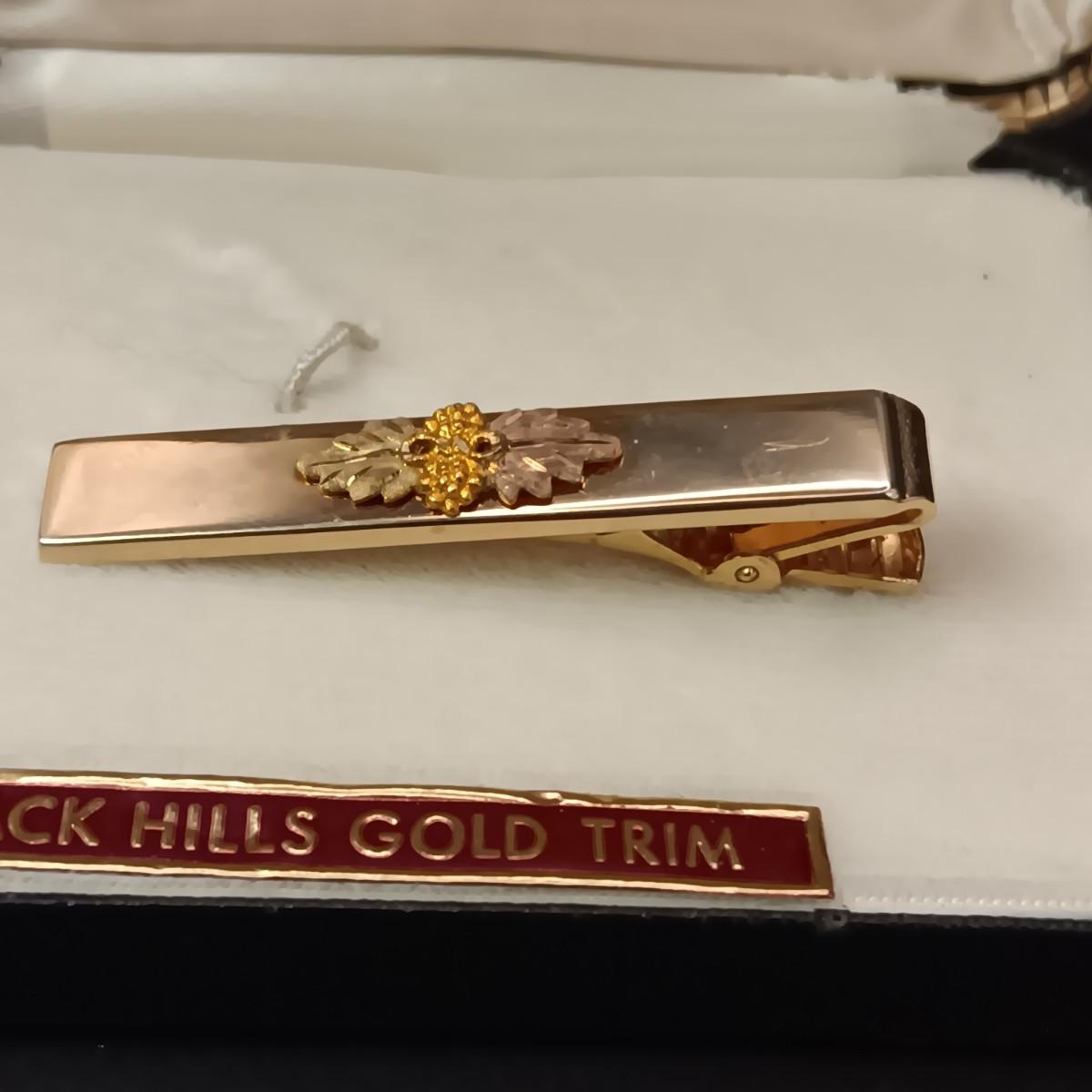 BLACK HILLS GOLD TRIM TIE CLIP, TIE TACKS AND A PIN