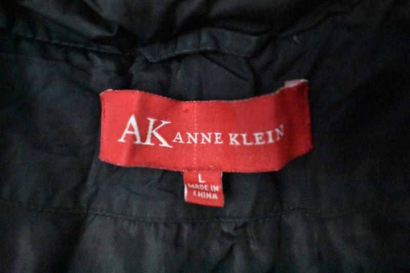 Black Hooded Winter Coat by Anne Klein, Size Large, Faux Fur on Hood