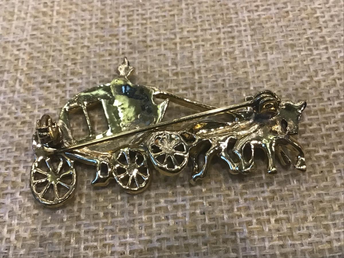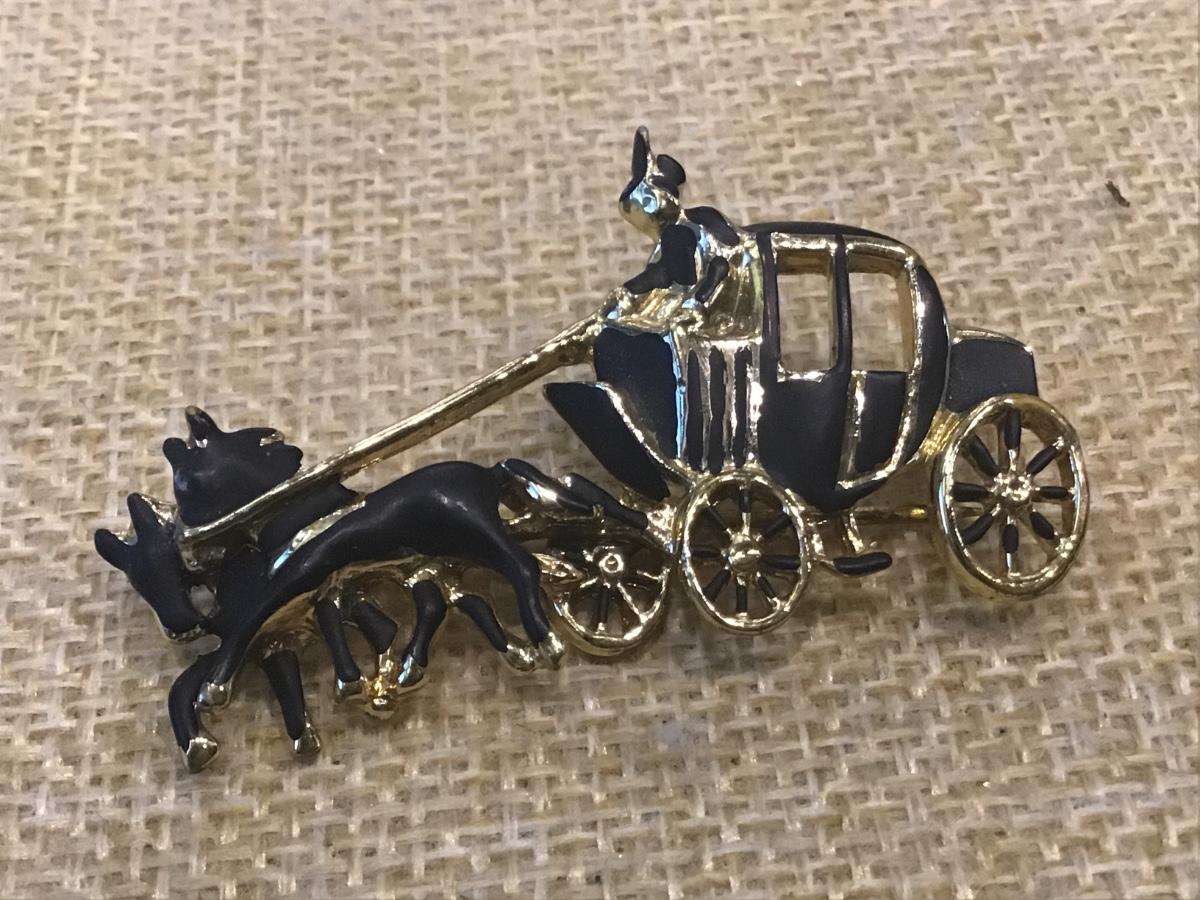 Black Horse & Carriage Stage Coach Brooch Pin