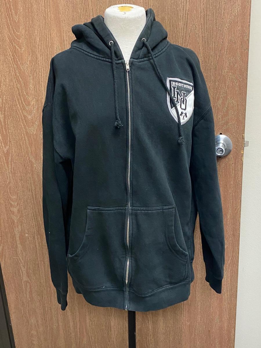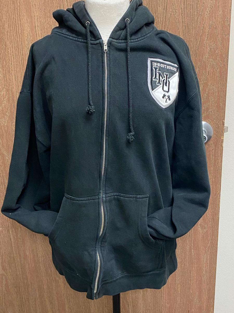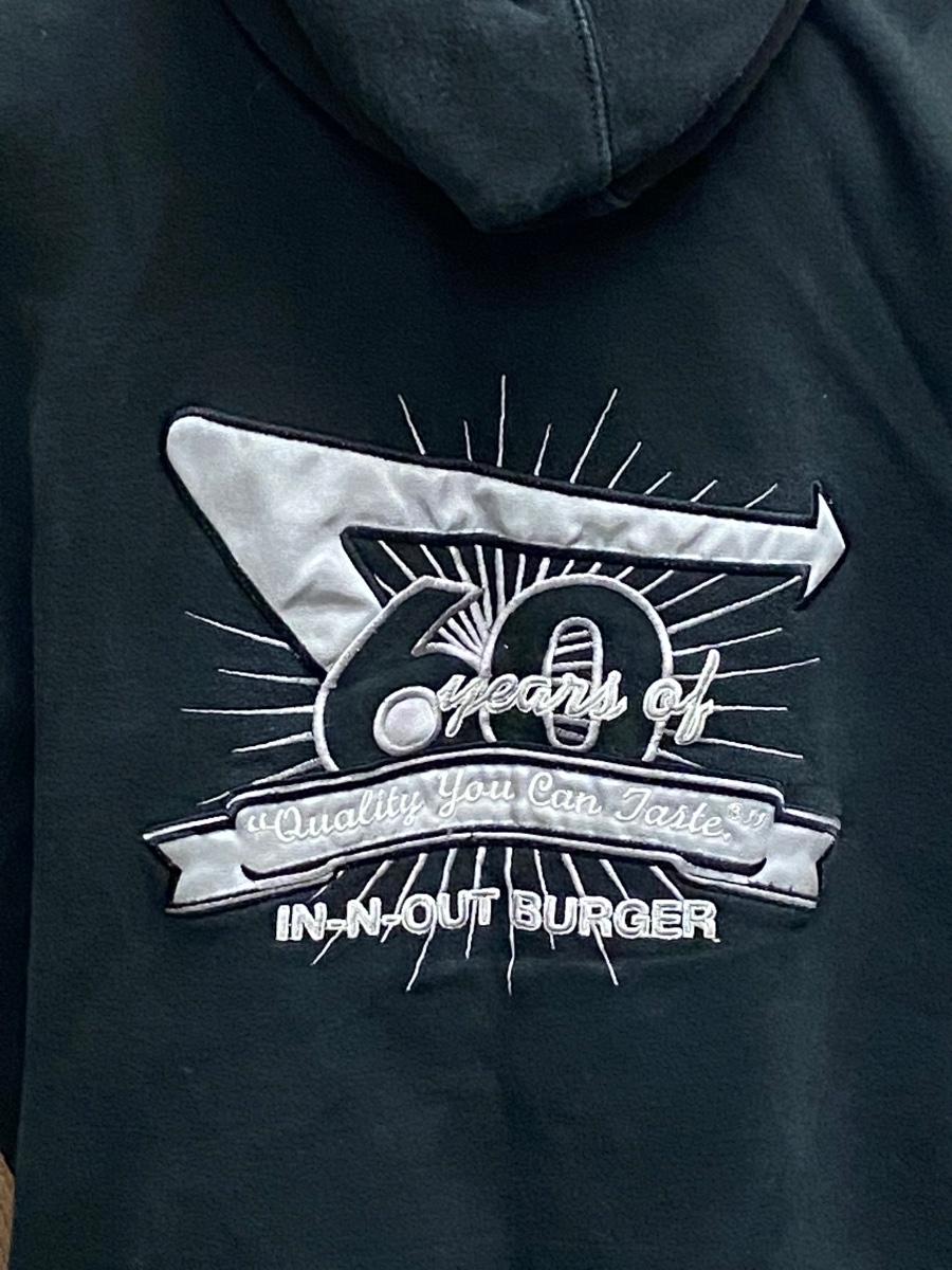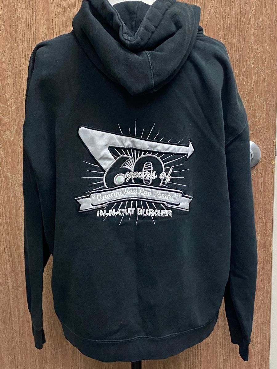 Black In-n-Out Burgers 60th Anniversary Zipper Hoodie Jacket Large. Looks to be some light fade but in good wearable condition. In-n-Out started in 1948, 60th anniversary would have been in 2008.