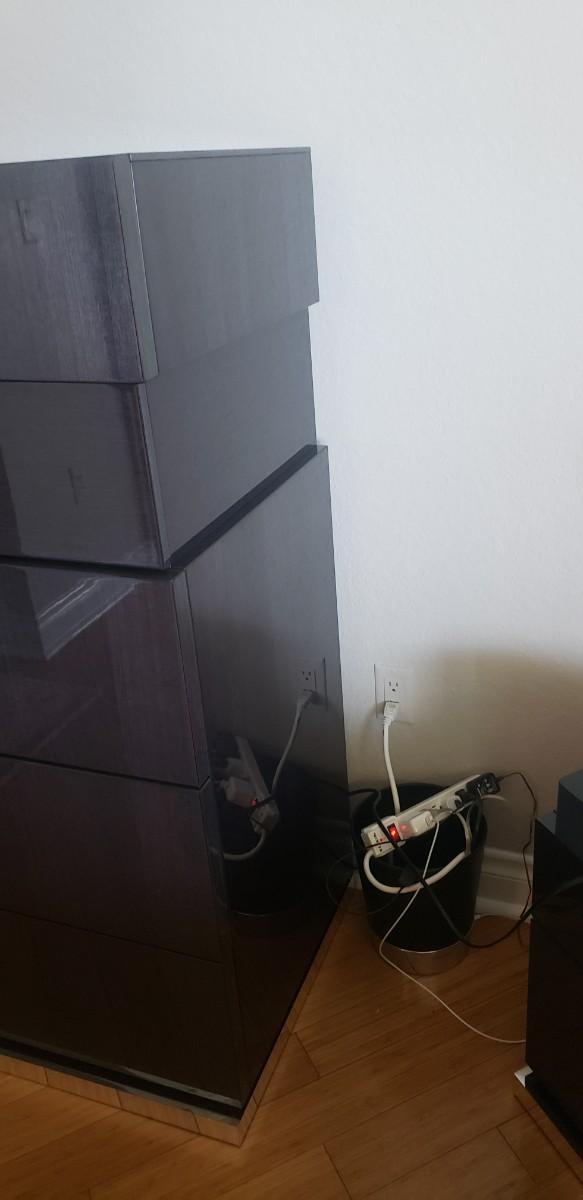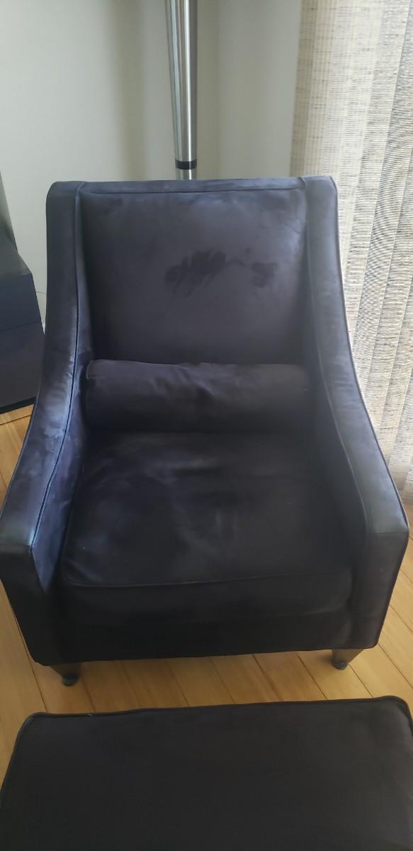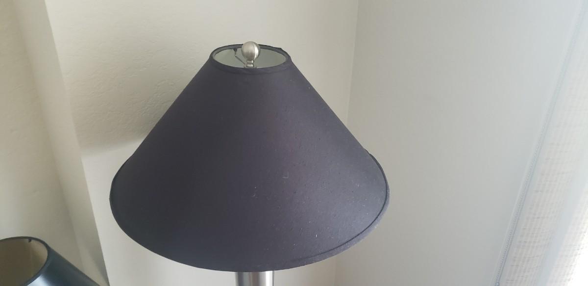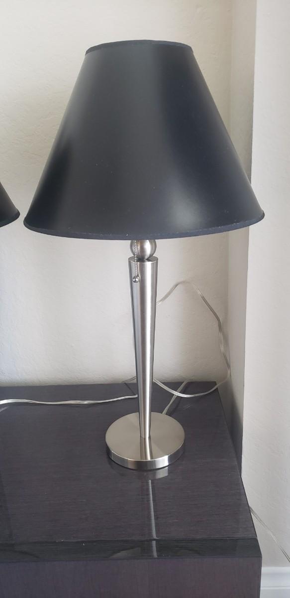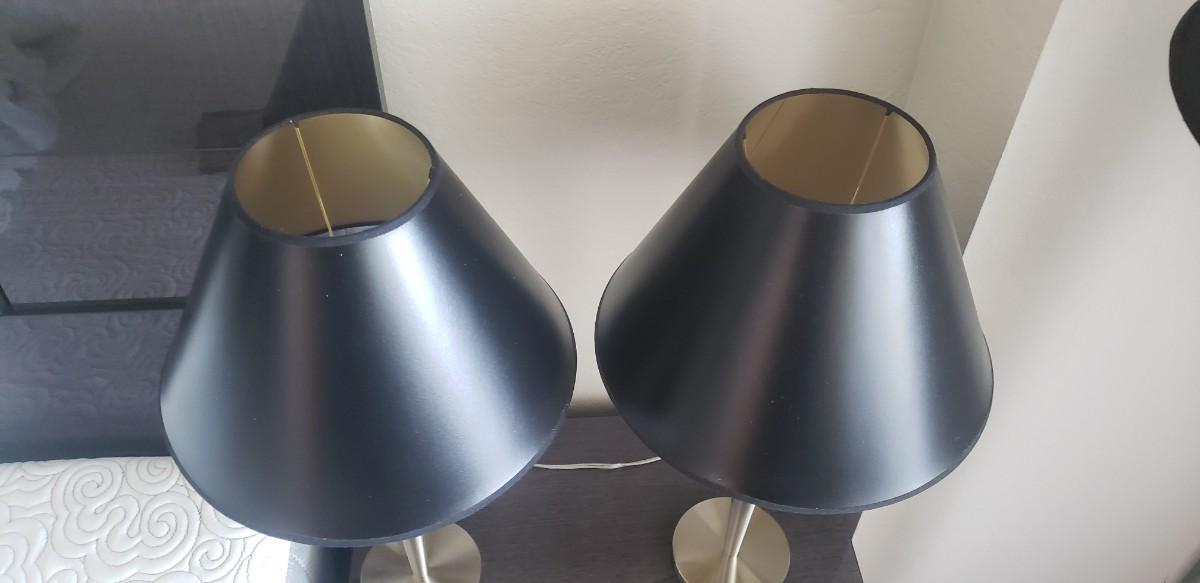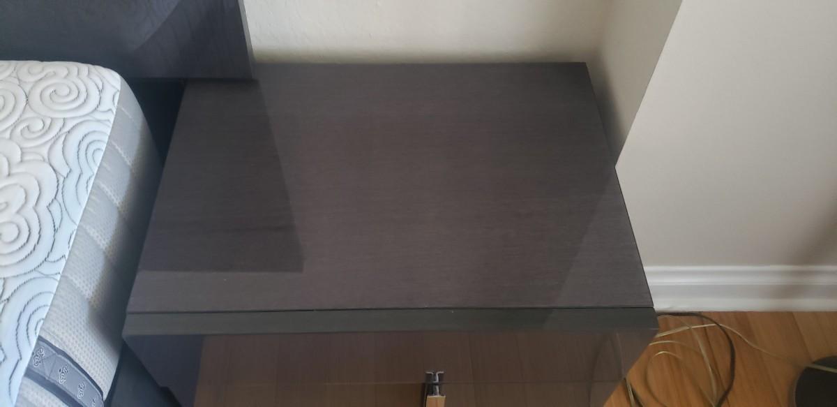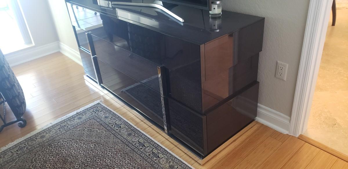 This Lot Includes King size bed (slate wood base) and mattress, two night stands (left & right) high dresser, Low dresser, solid wood made in Italy. 3 Silver Lamps, 1 is a Floor Lamp and 2 are Table lamps, Suede chair and Ottoman