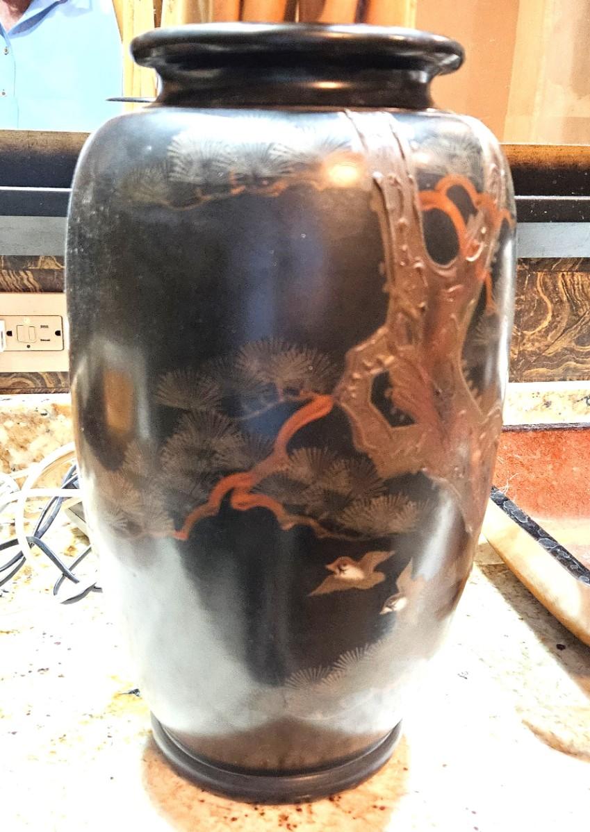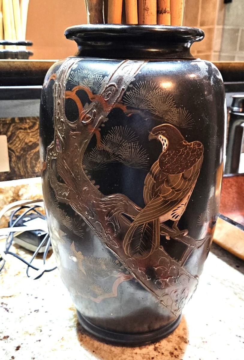 Black Japanese Lacquer Vase, 15H