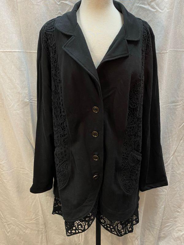 Black Lace Edge Button Front Jacket by XCVI Size 2X YD#020-1220-02163
