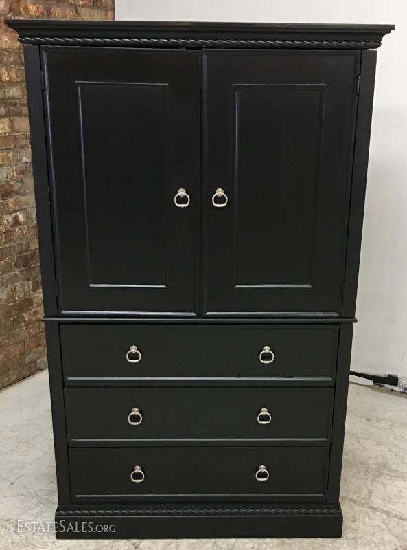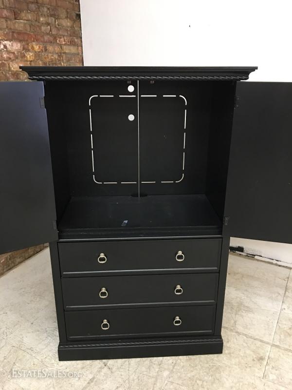 Black Lacquer Entertainment Center TV Cabinet Mint Condition