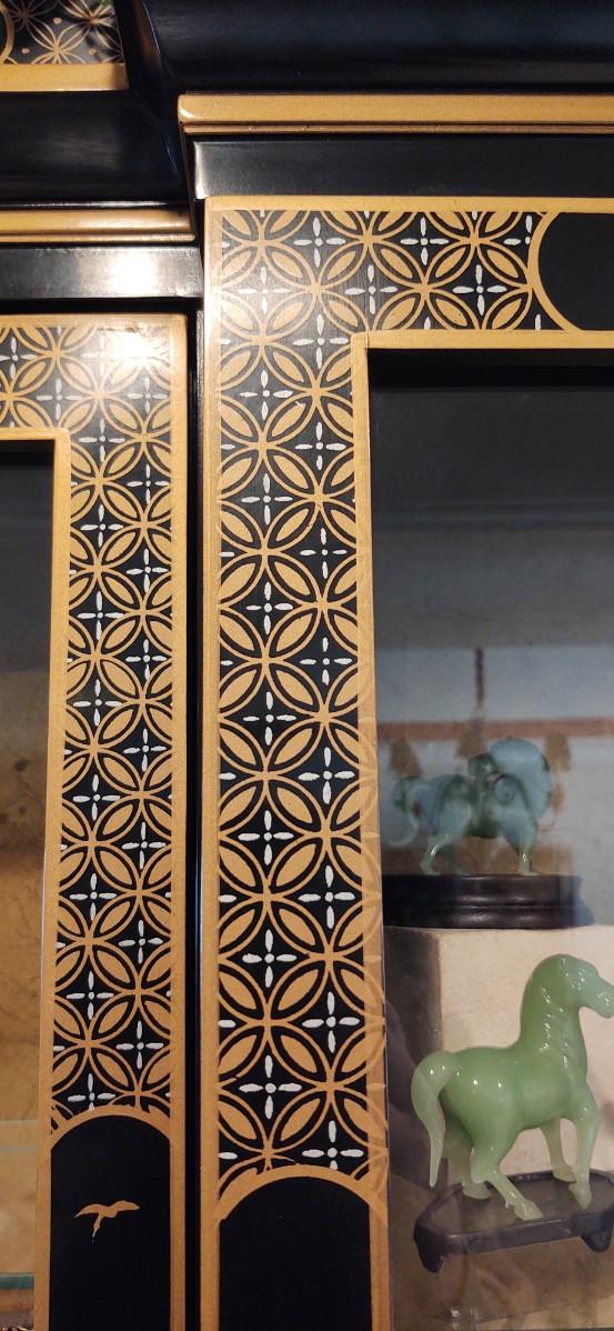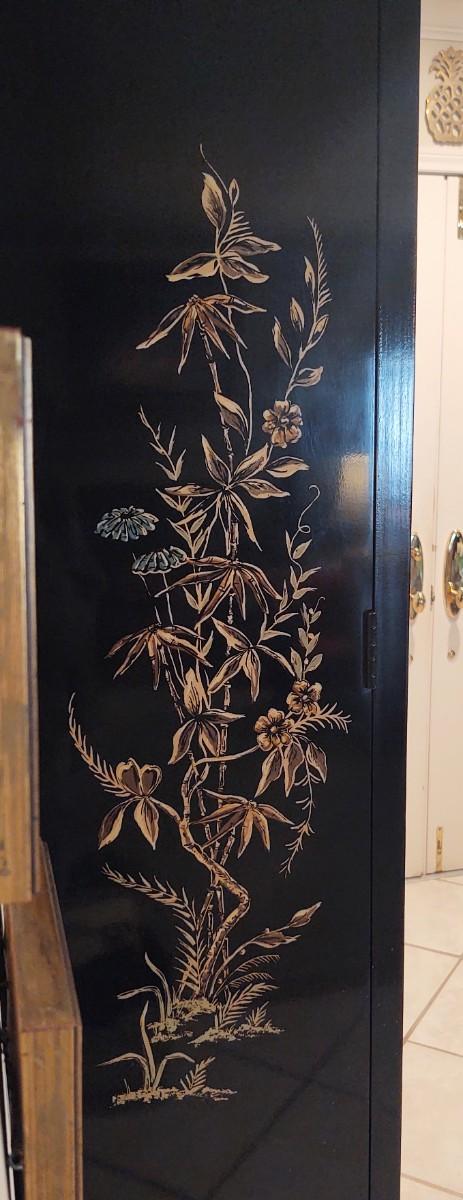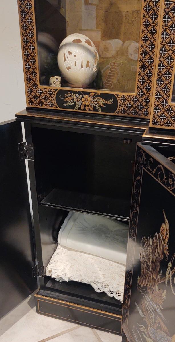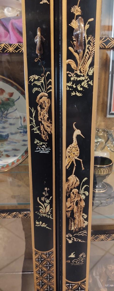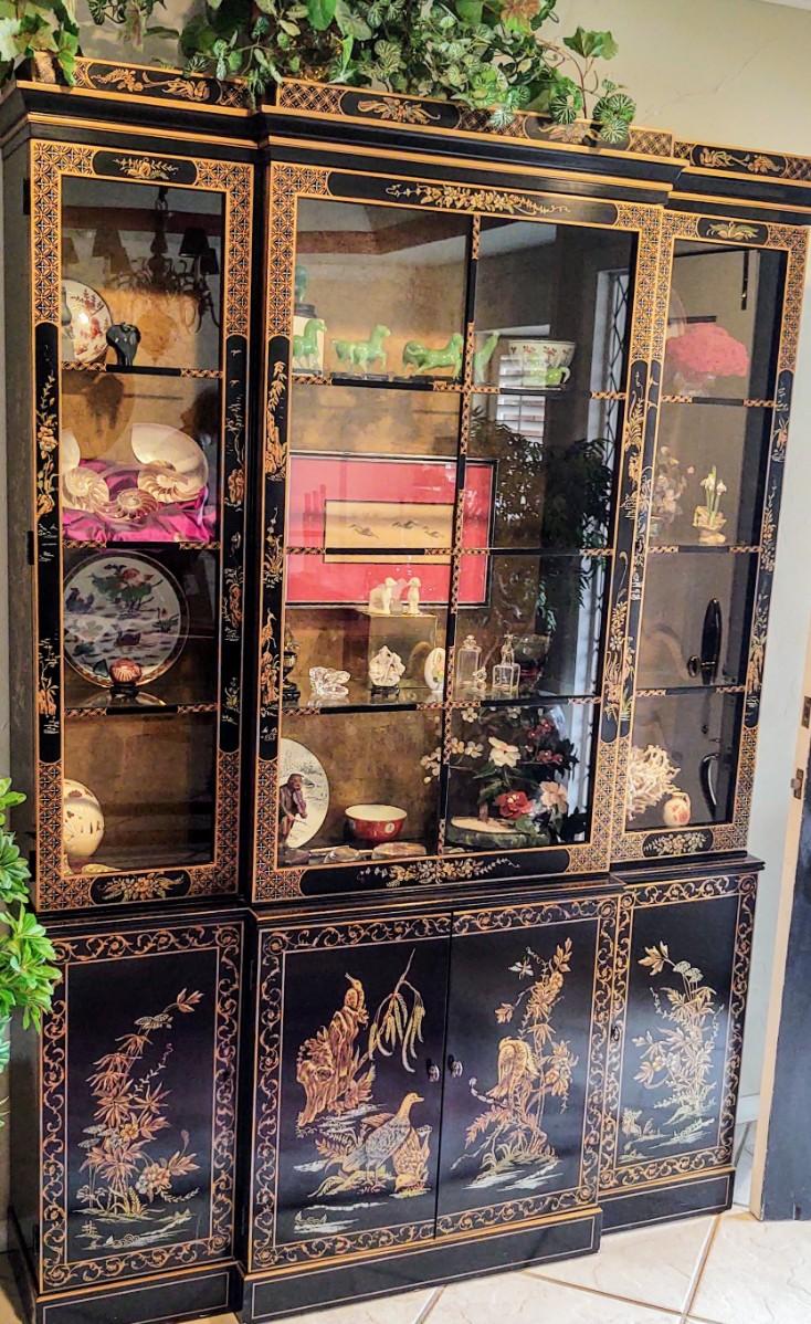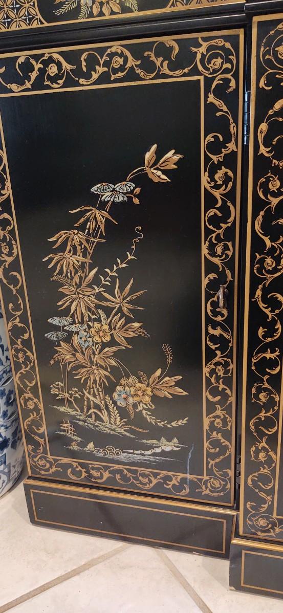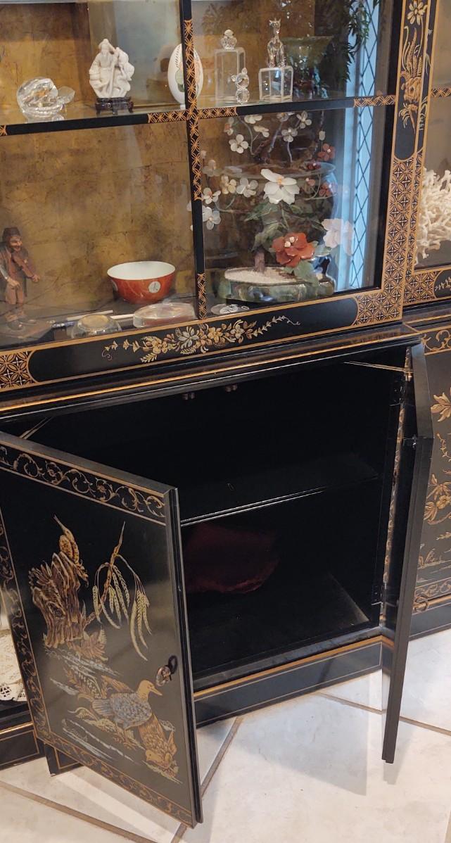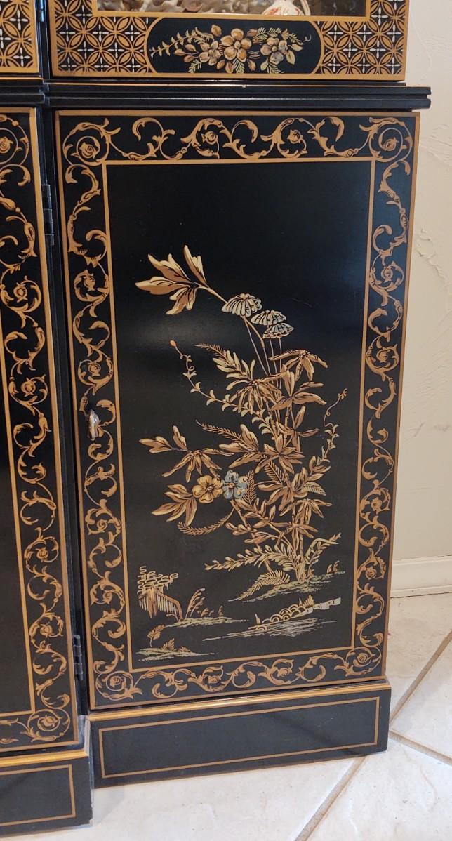Ornate Black Lacquer & Gold Lighted Cabinet