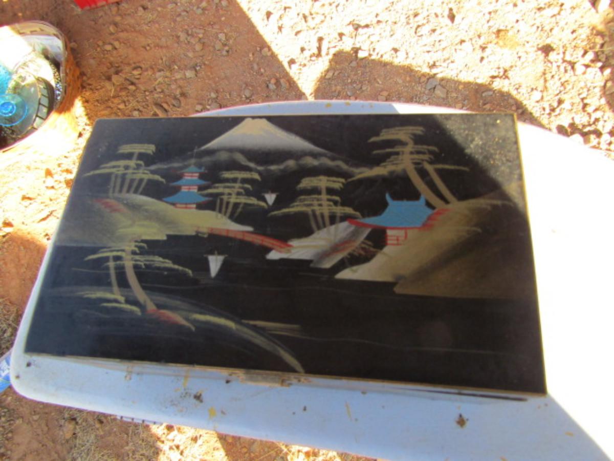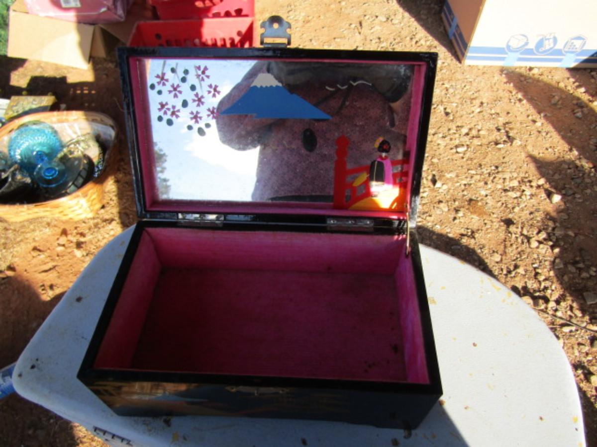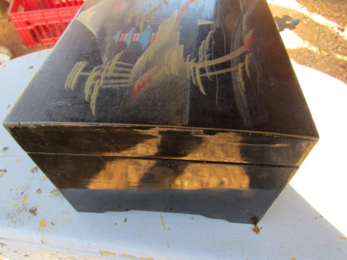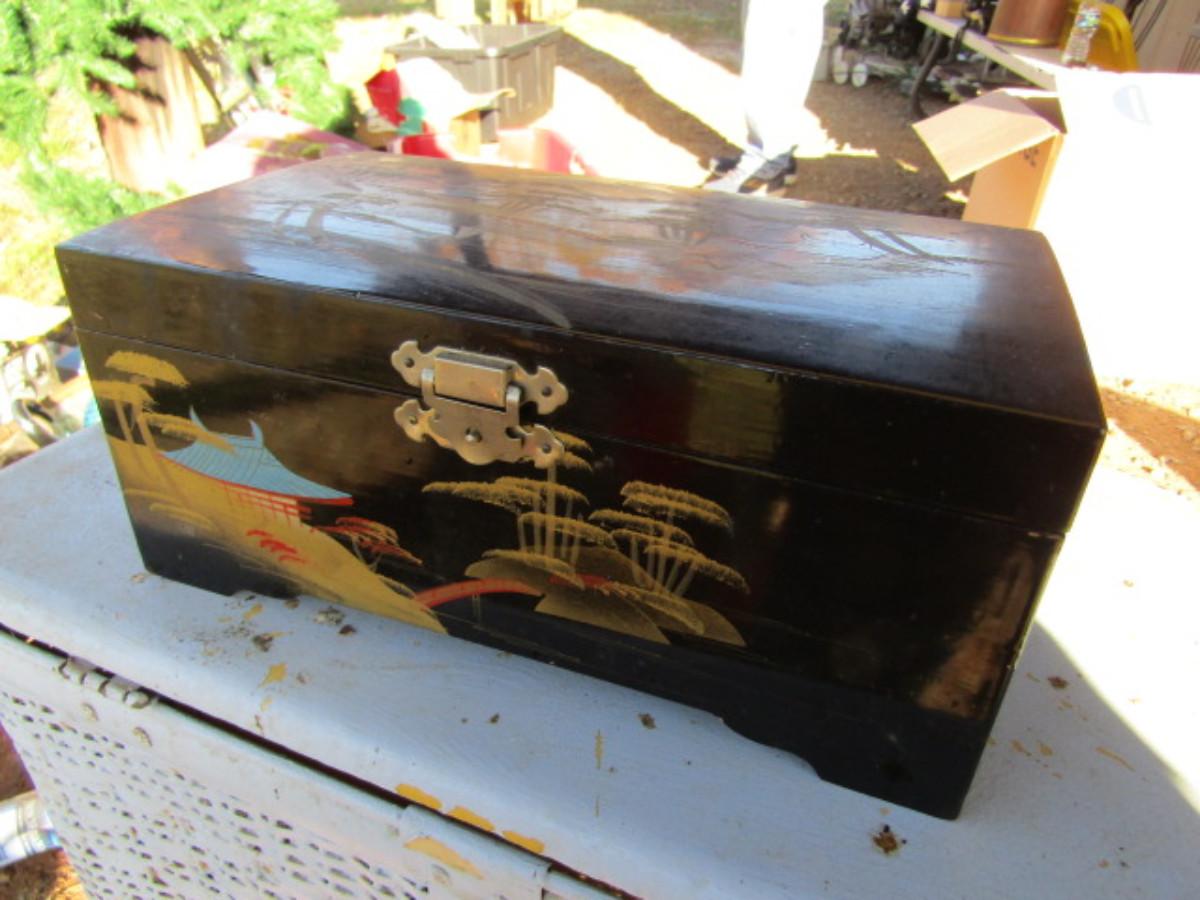 Black Lacquer Jewelry Box with Mirror- Made in Japan. Needs Cleaning. With some light crazing, chipping- Please see all pictures.