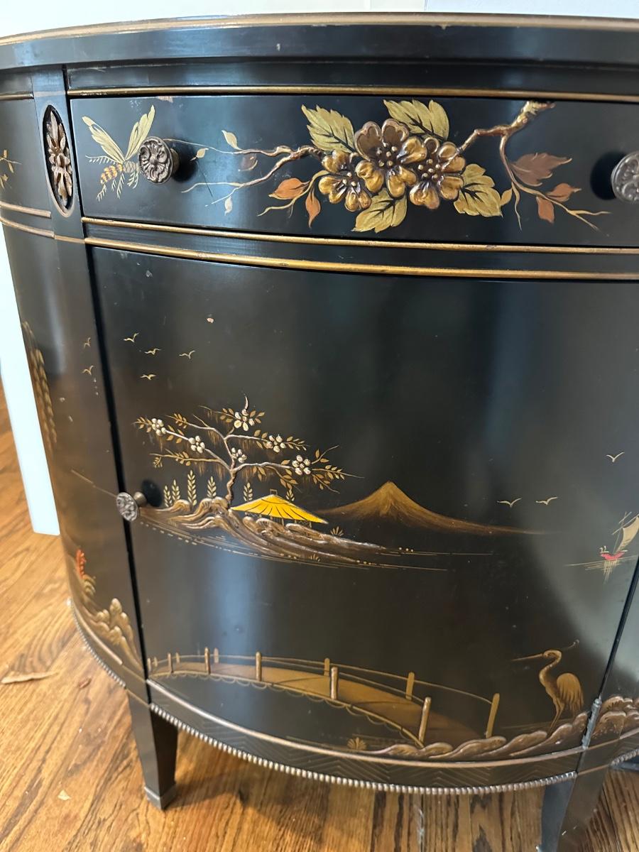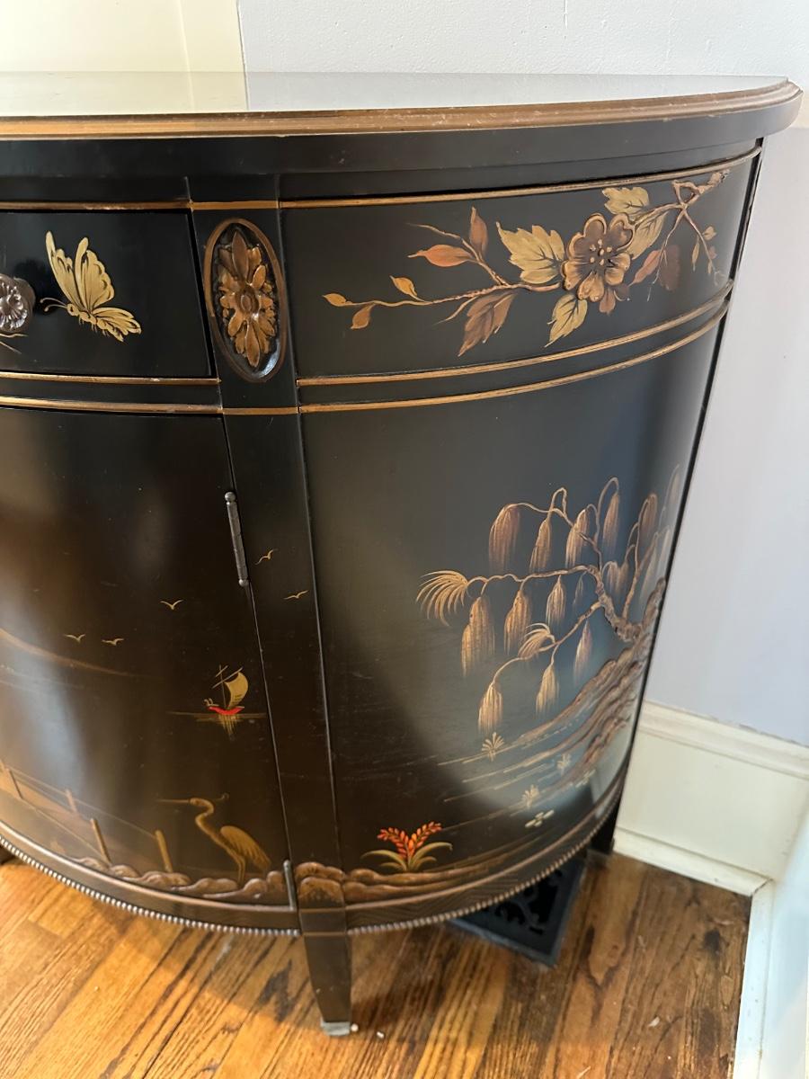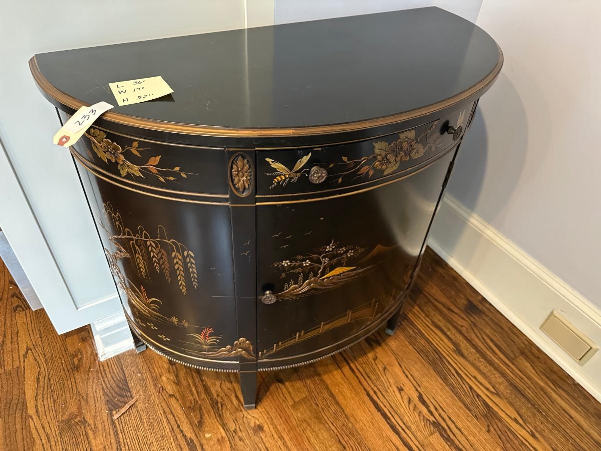 IMPERIAL BLACK LAQUER ASIAN DEMILUNE CHEST 36X17X32 MINOR SCRATCHES ON TOP