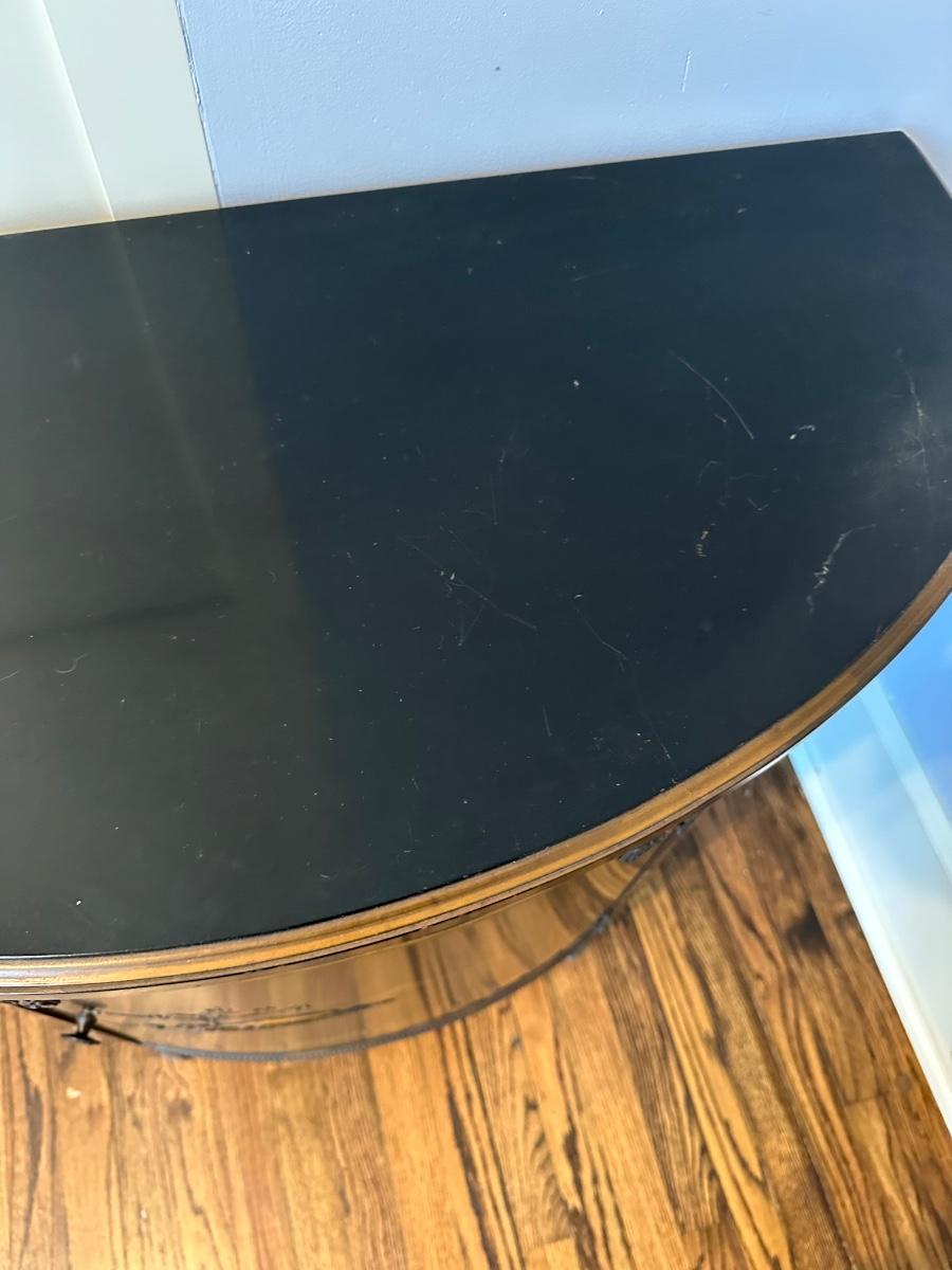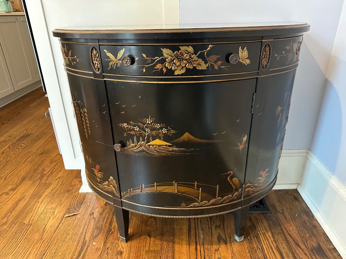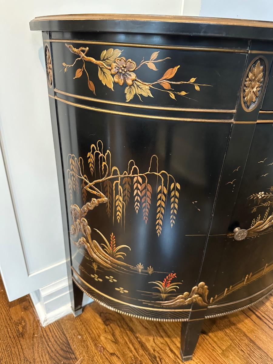 IMPERIAL BLACK LAQUER ASIAN DEMILUNE CHEST 36X17X32 MINOR SCRATCHES ON TOP