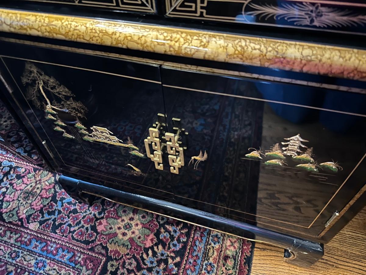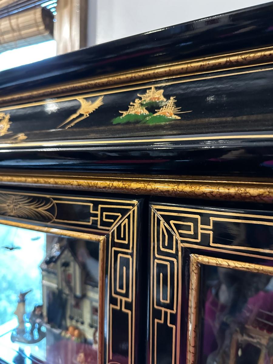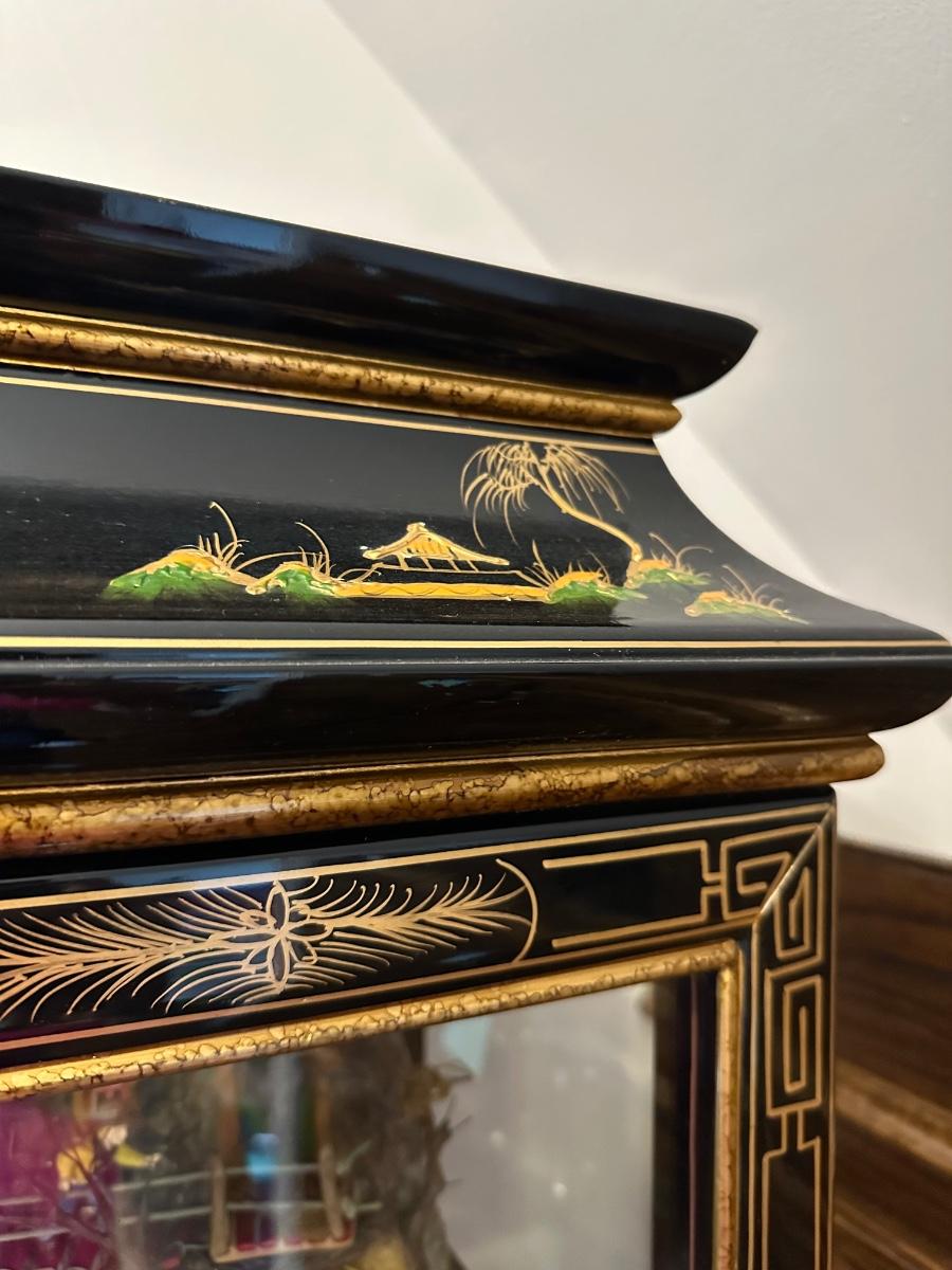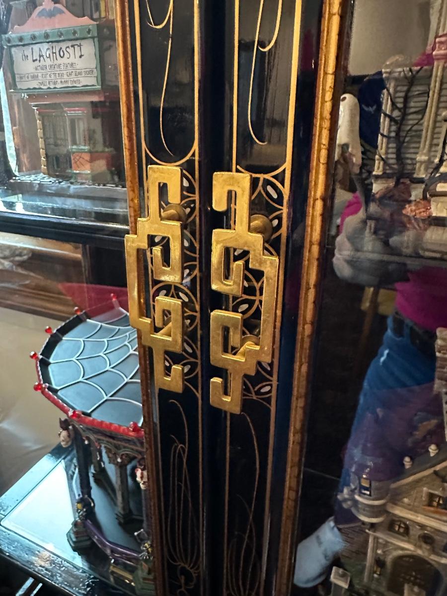 BLACK LAQUER ASIAN CURIO CABINET