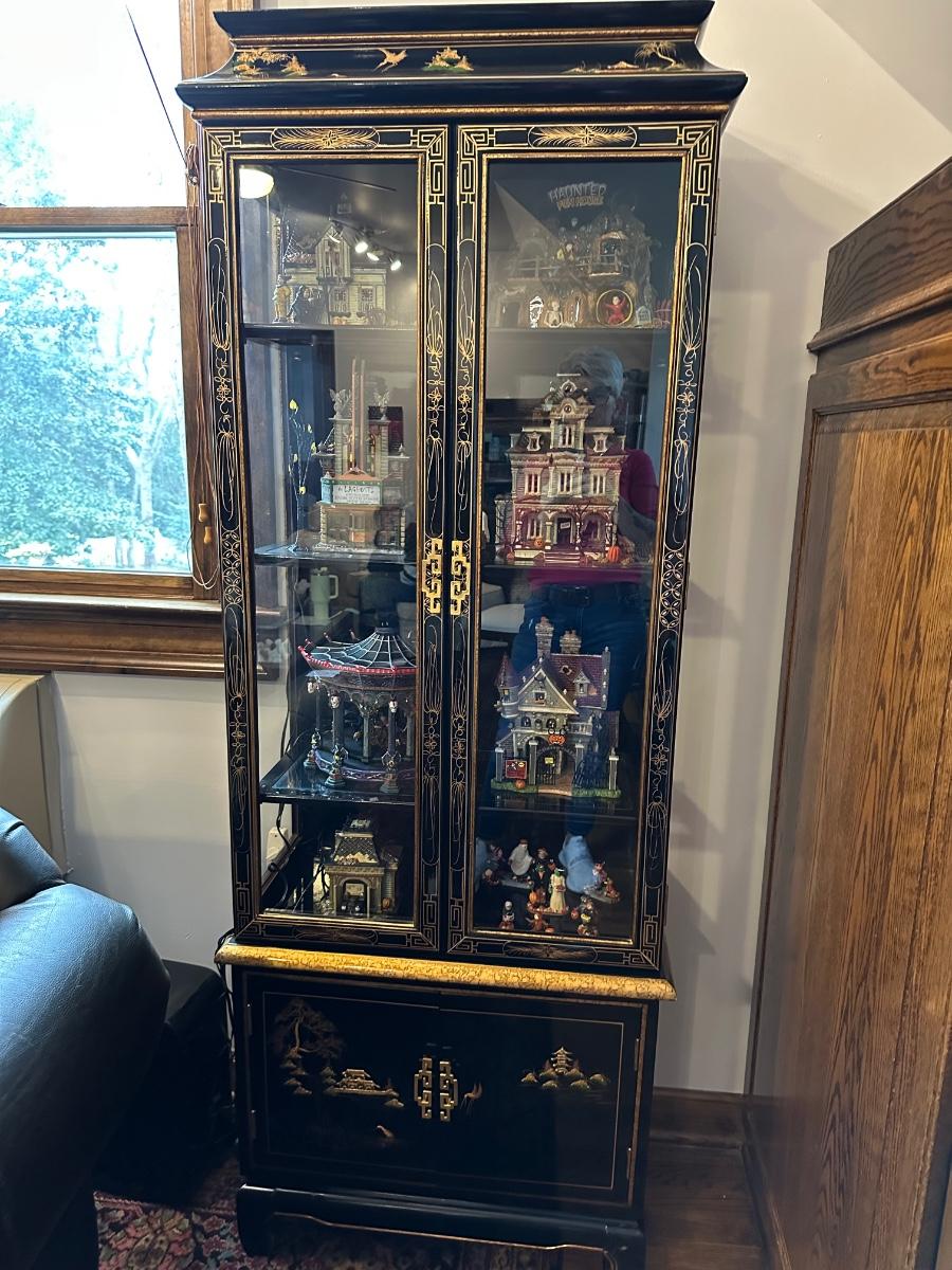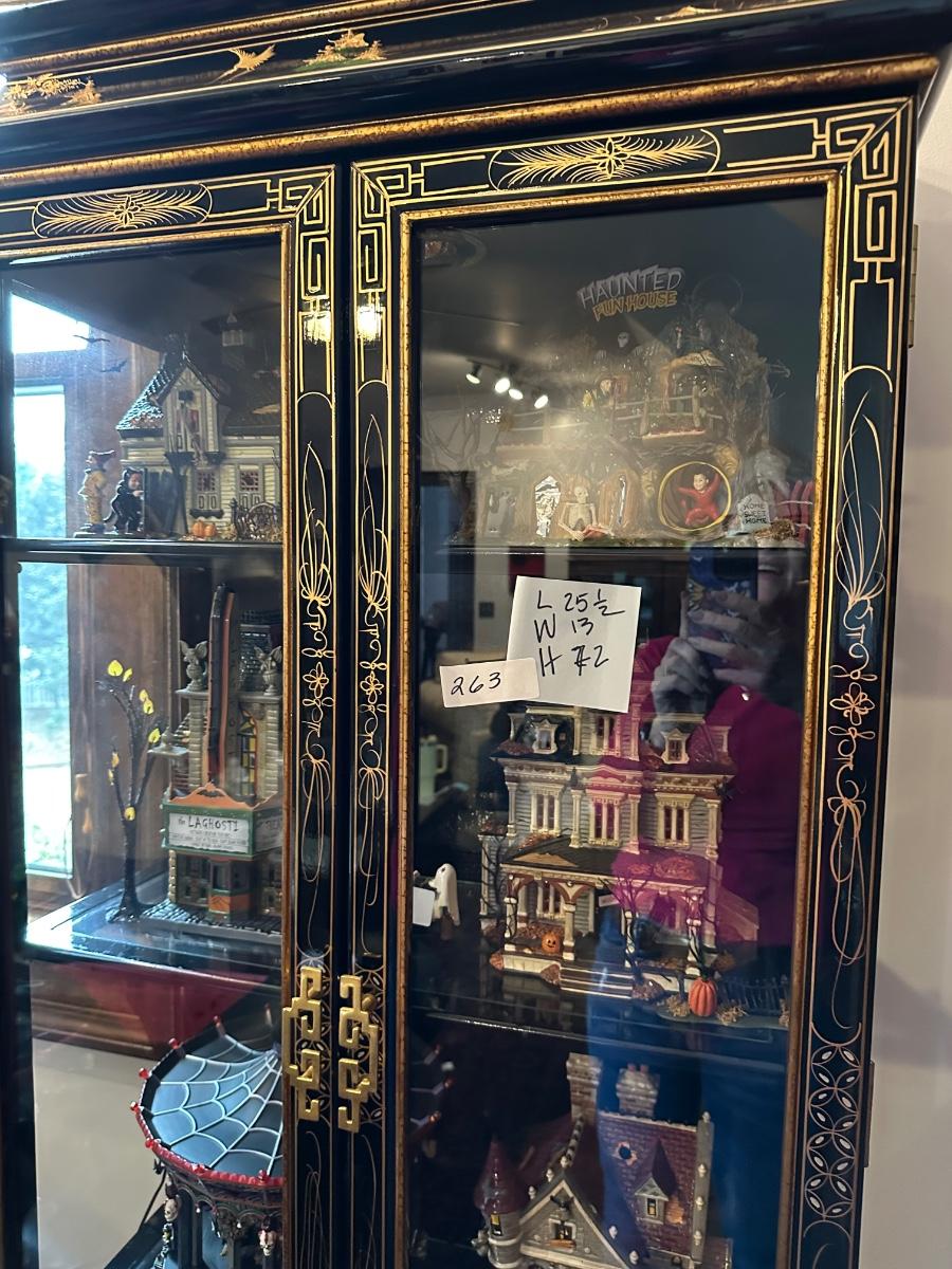 BLACK LAQUER ASIAN CURIO CABINET 25X13X72 does not include contents