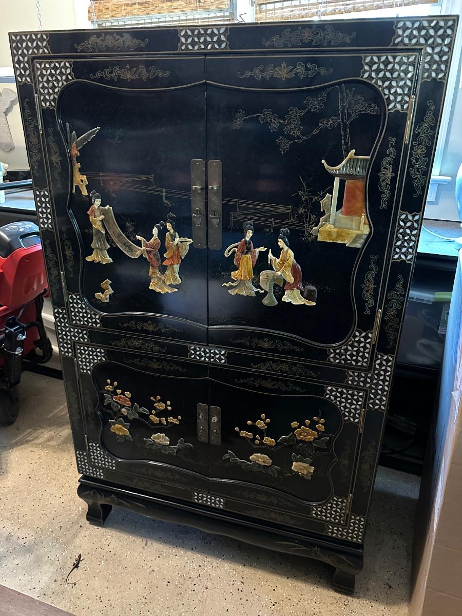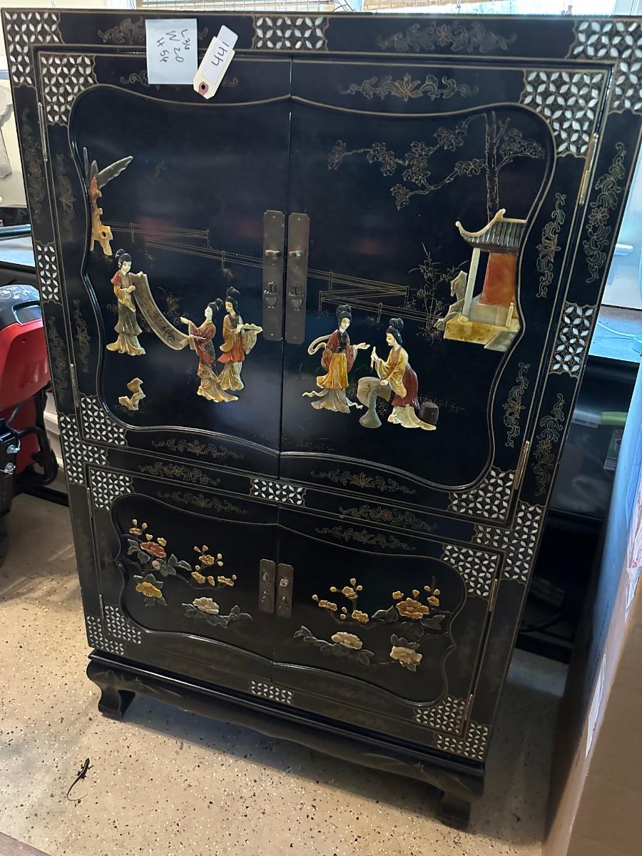 BLACK LAQUER ASIAN ENTERTAINMEBNT CABINET 36X20X56