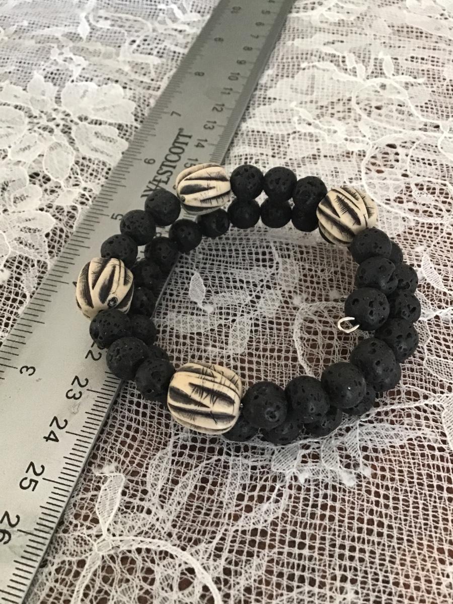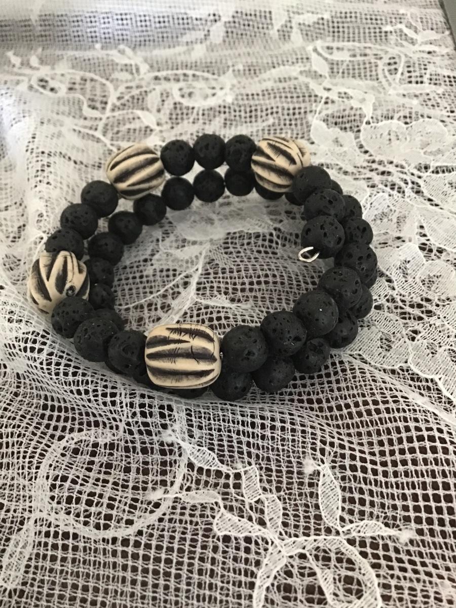 Black lava stone beaded wire twist bracelet