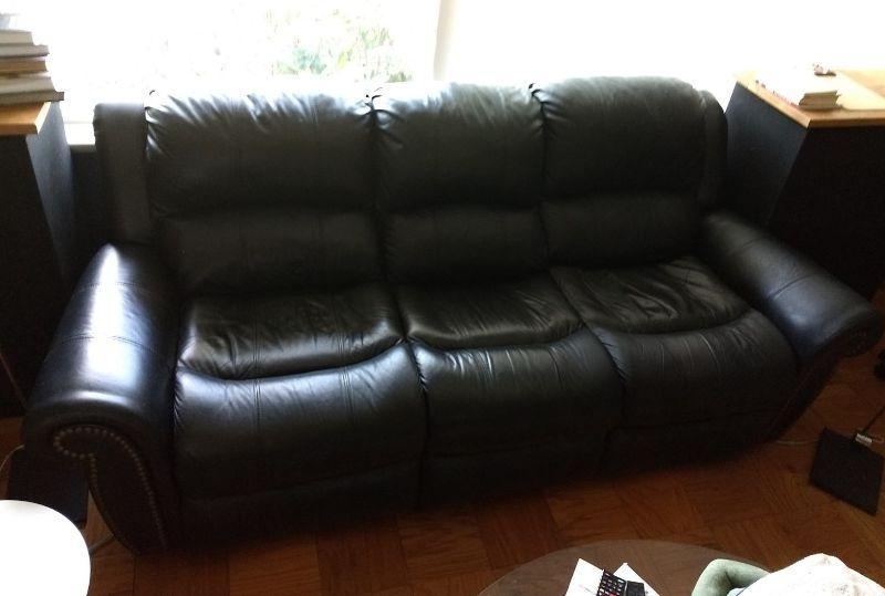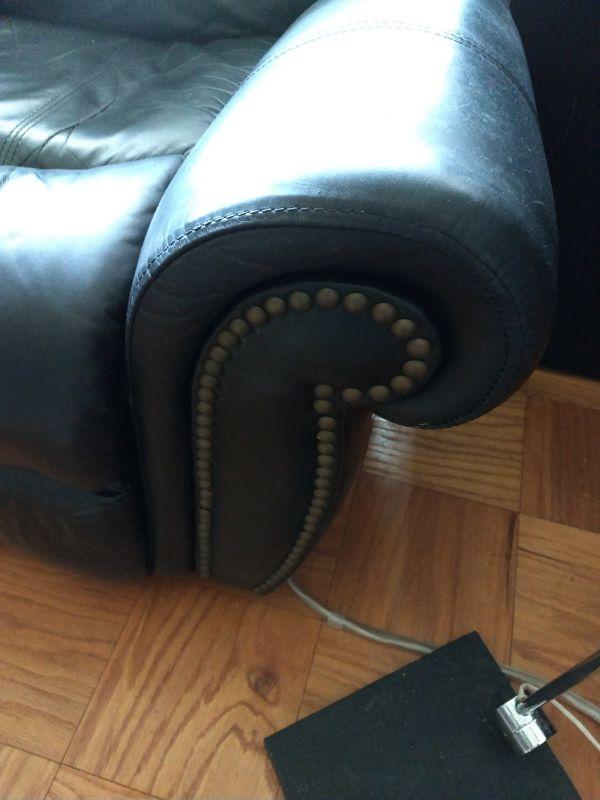 Black Leather Couch with Brass Button Accents