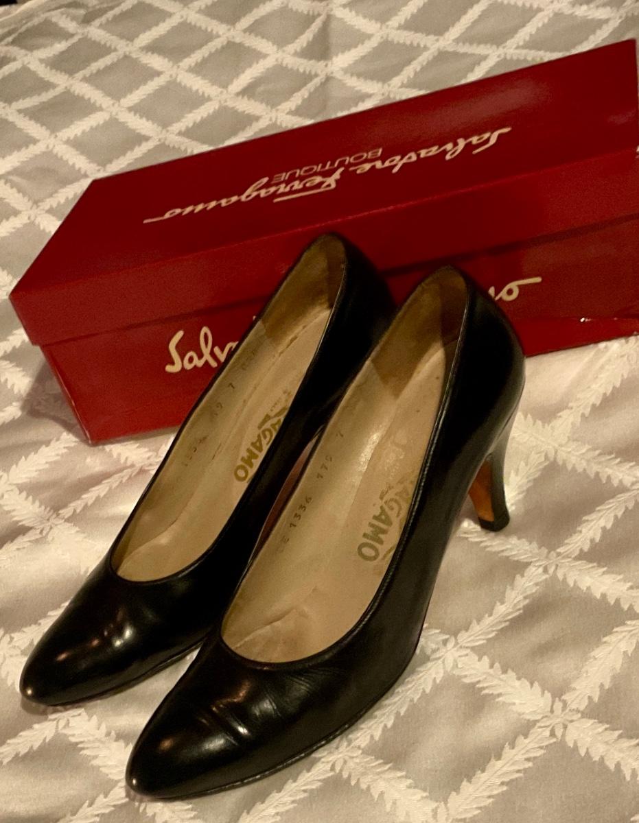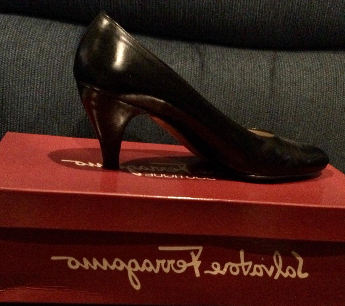 Black leather high heel made by Salvador Feragamo size 7AAAA