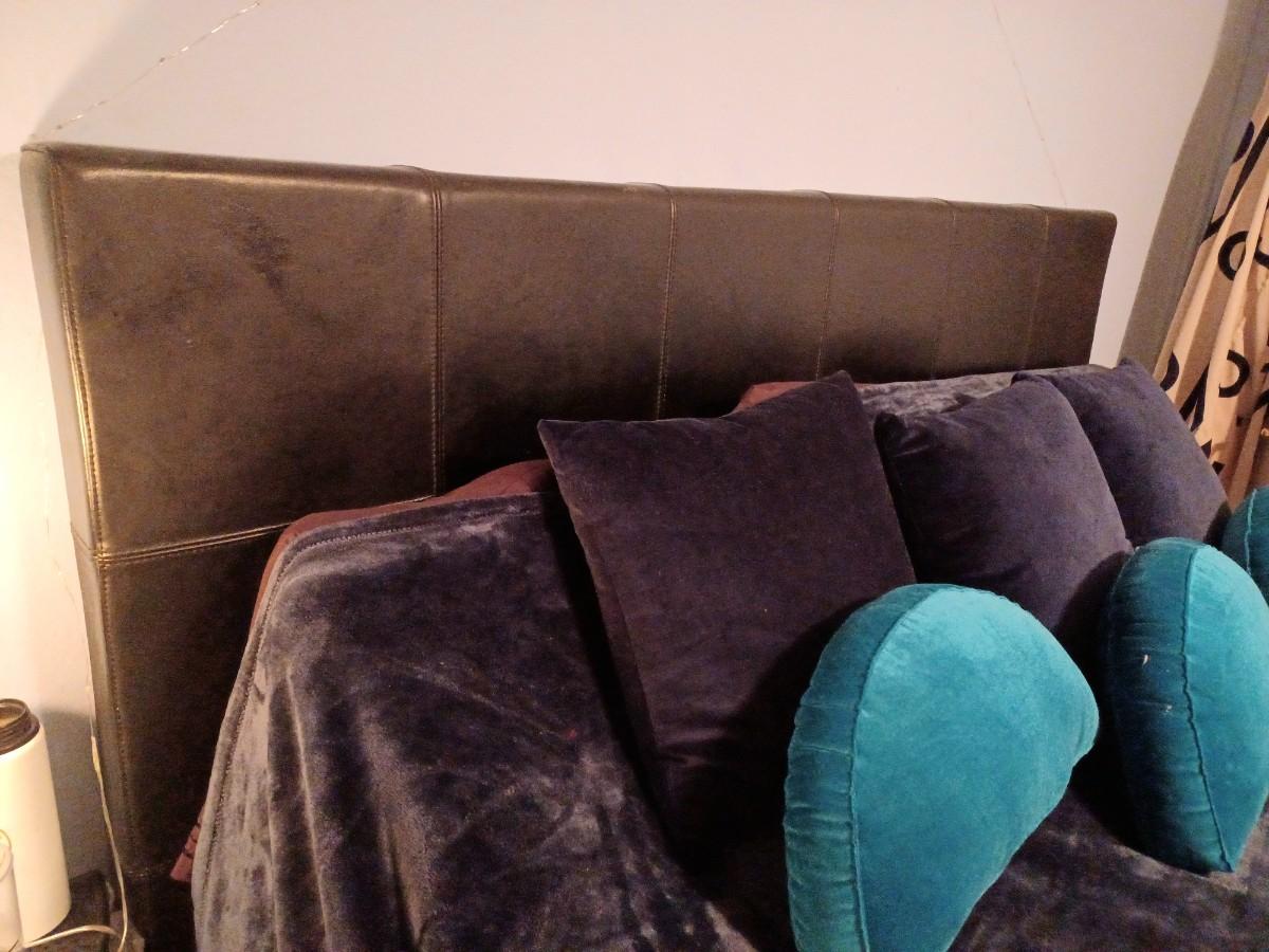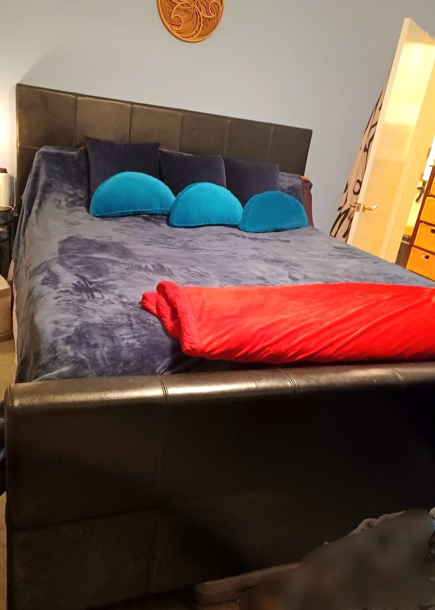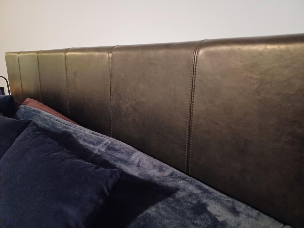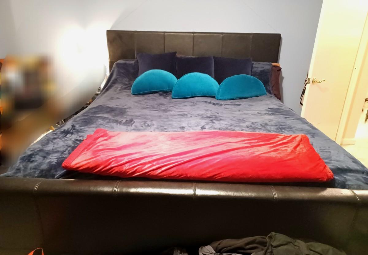 Black Leather Paneled Cal King Headboard/Footboard and Frame With Mattress