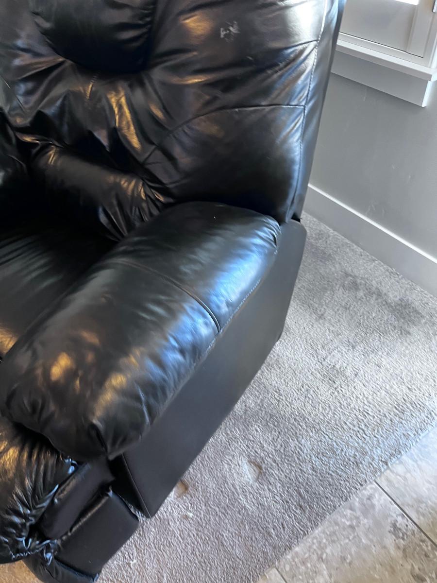 A Little bit of wear from use. Not a marked brand. Good Condition Overall. Works. Good Looking too. LARGE! Comes apart like a Lazy boy.