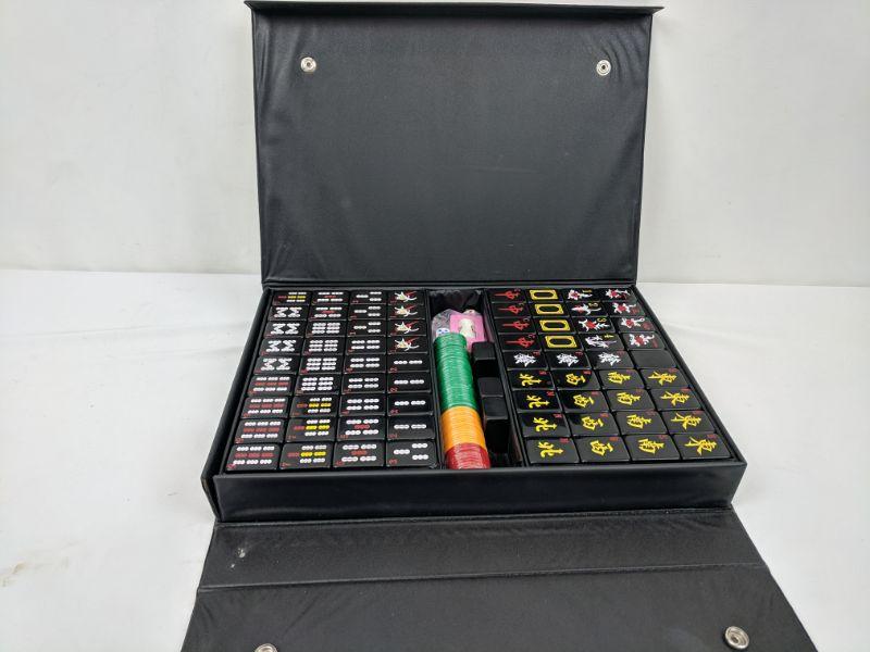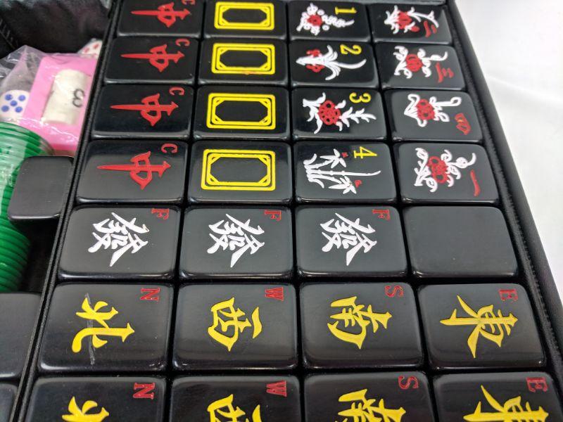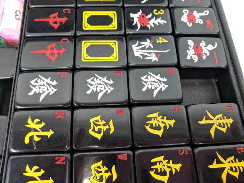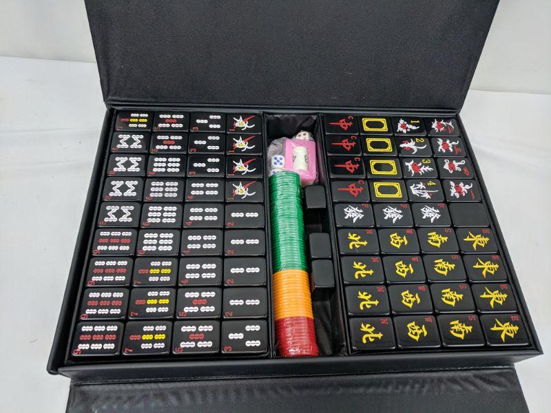 Black Mahjong Set, Missing 1 F Tile, Corner of Case Torn, Otherwise in Great Condition