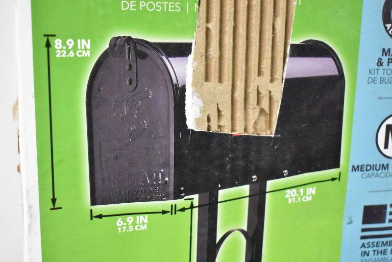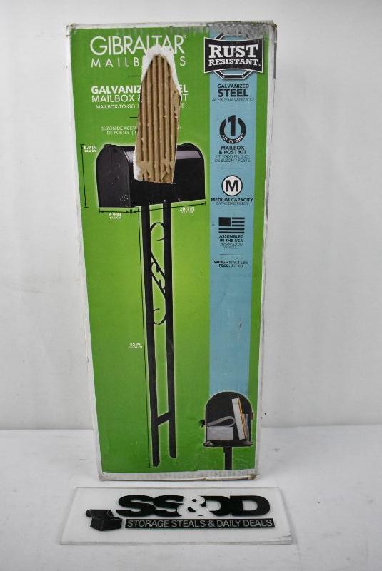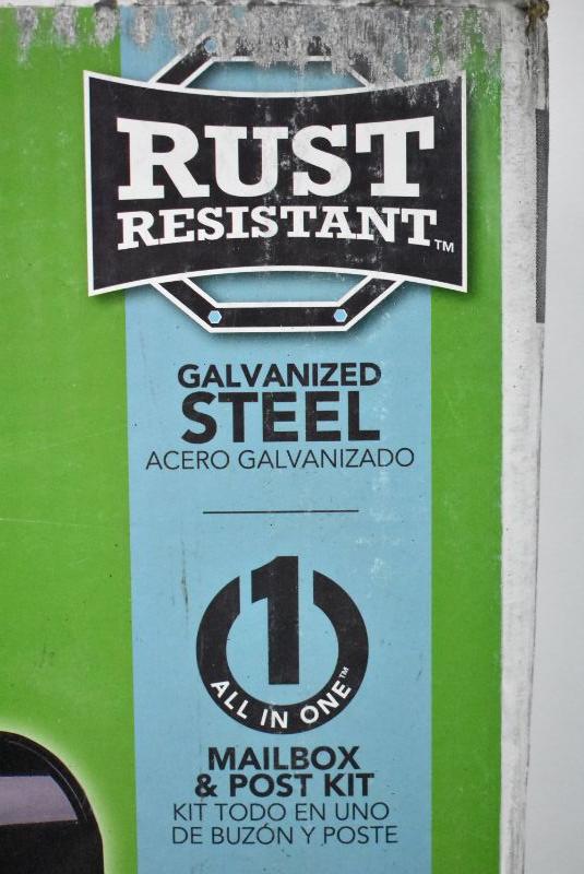 Black Mailbox, Galvanized Steel, Mailbox & Post Kit - New