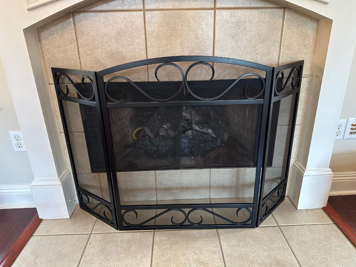 Black Metal 3-Panel Fireplace Screen