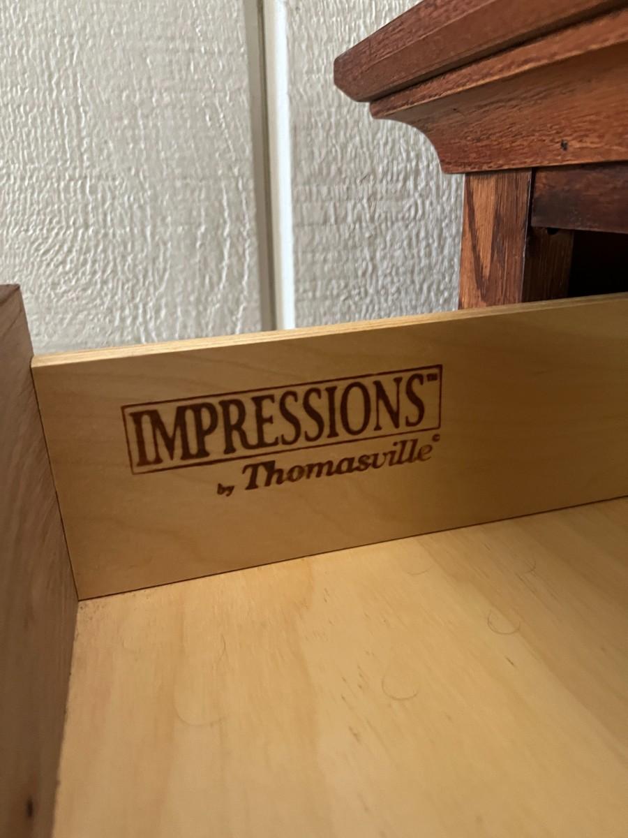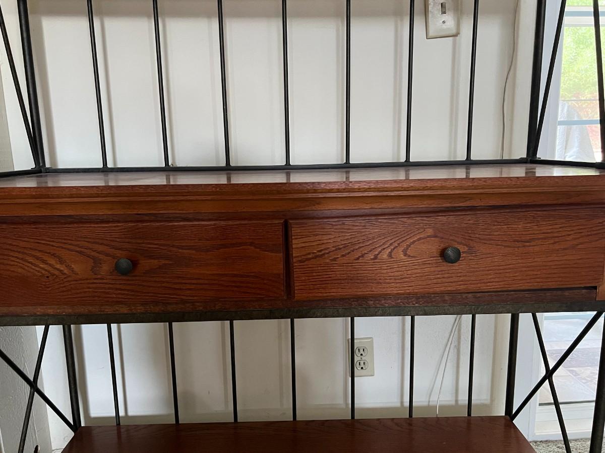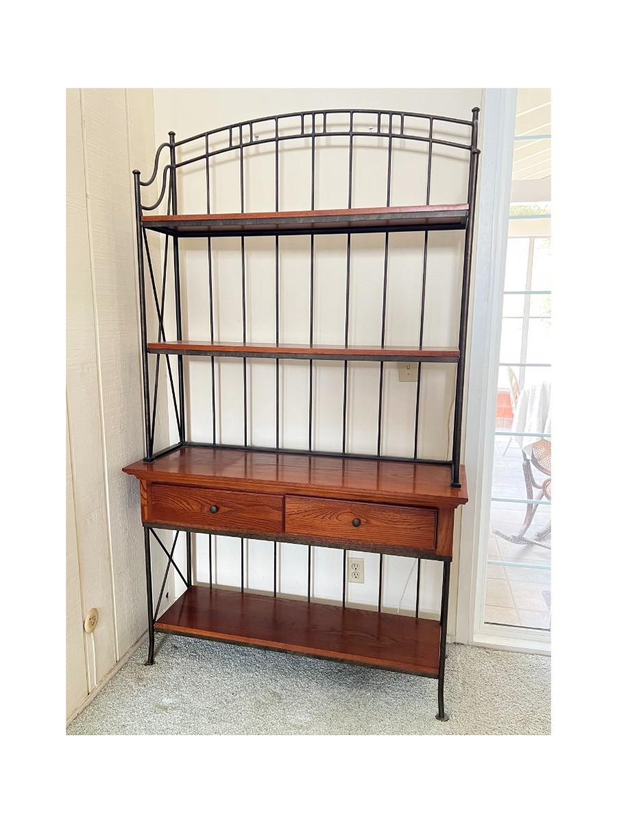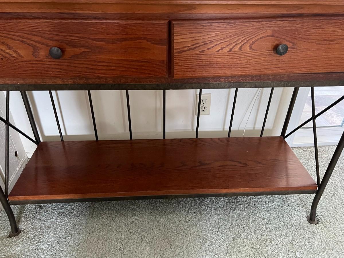 Black Metal and Wood Impressions by Thomasville Bakers Rake Hutch Buffet. Good used condition. Two drawers, one with built in flatware storage.