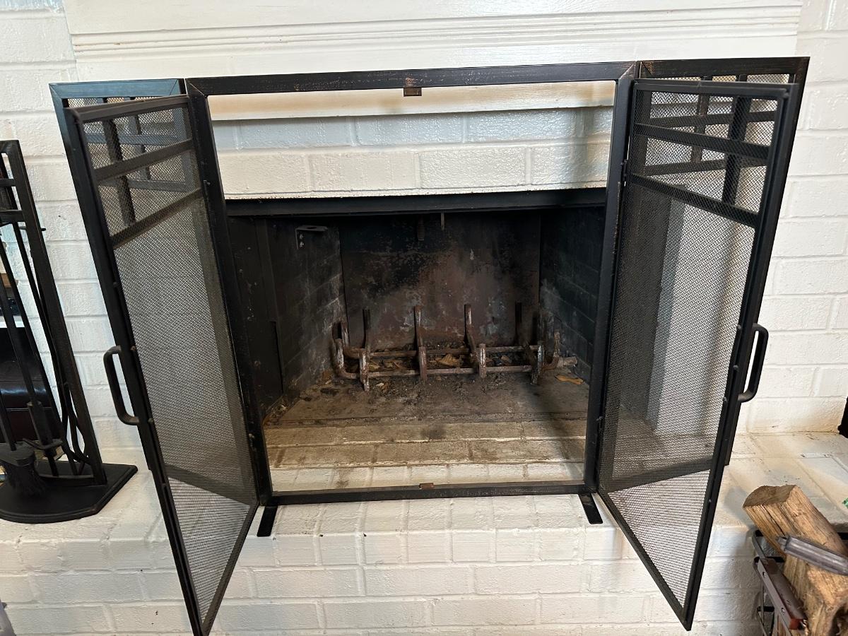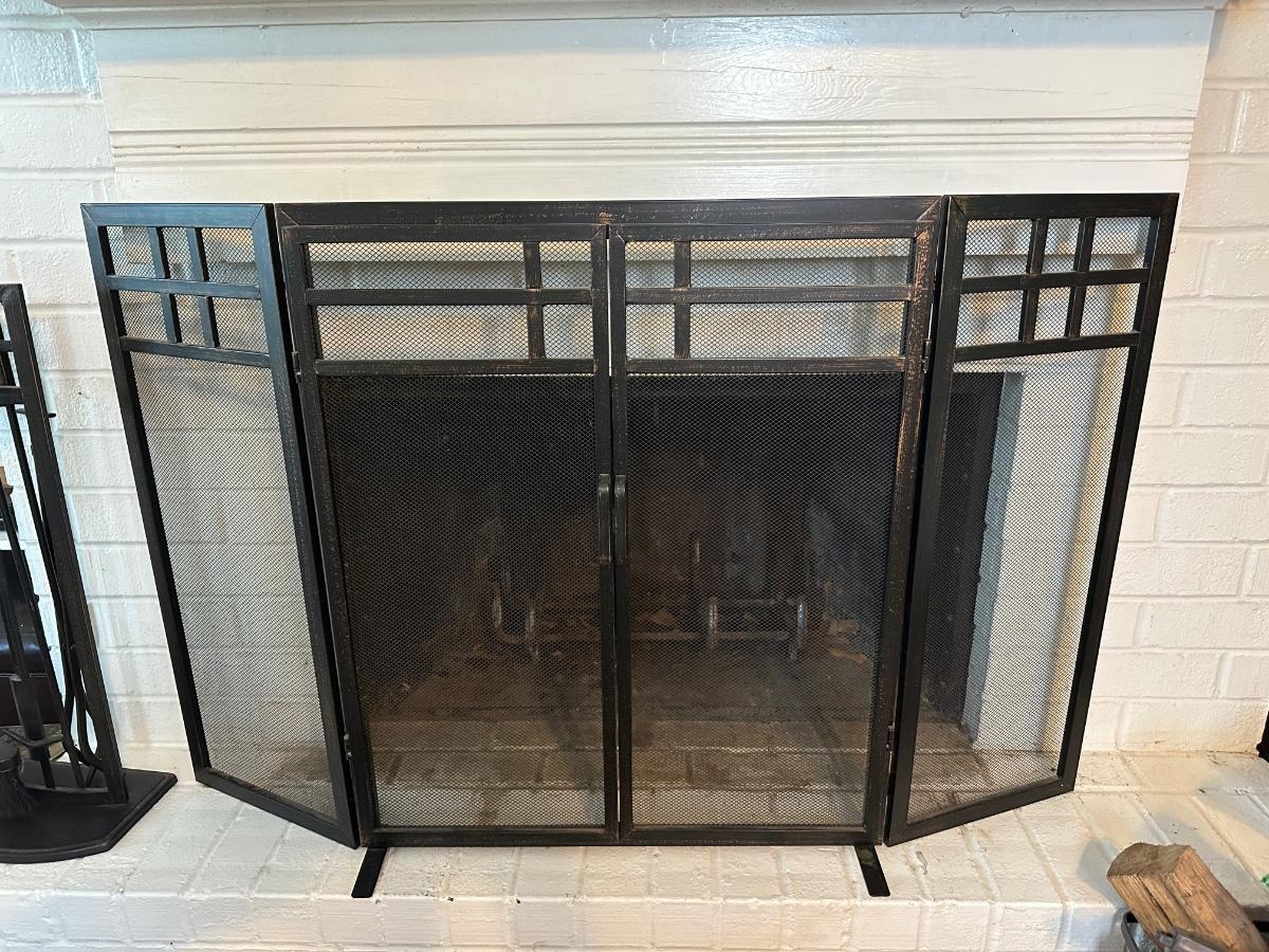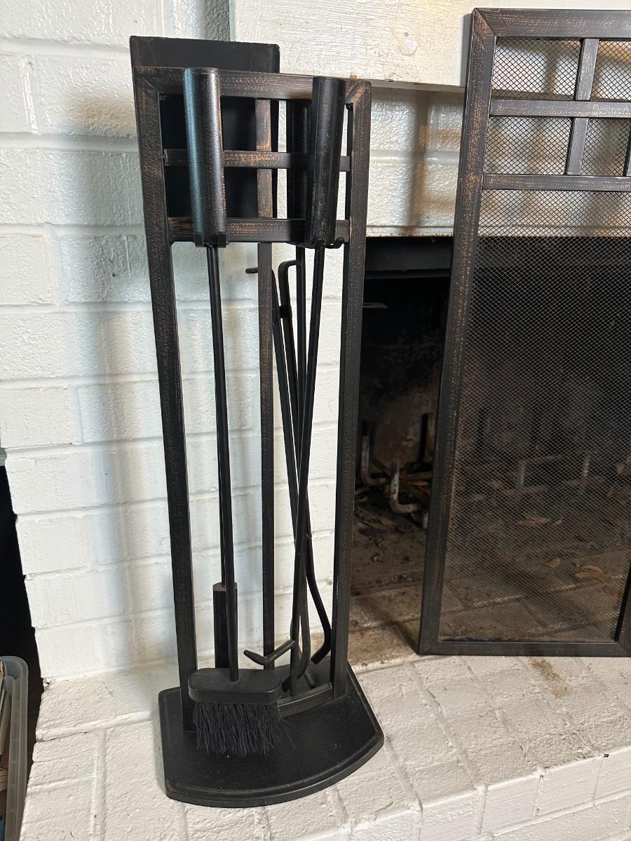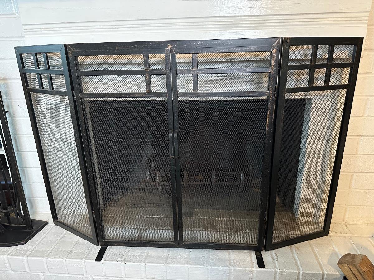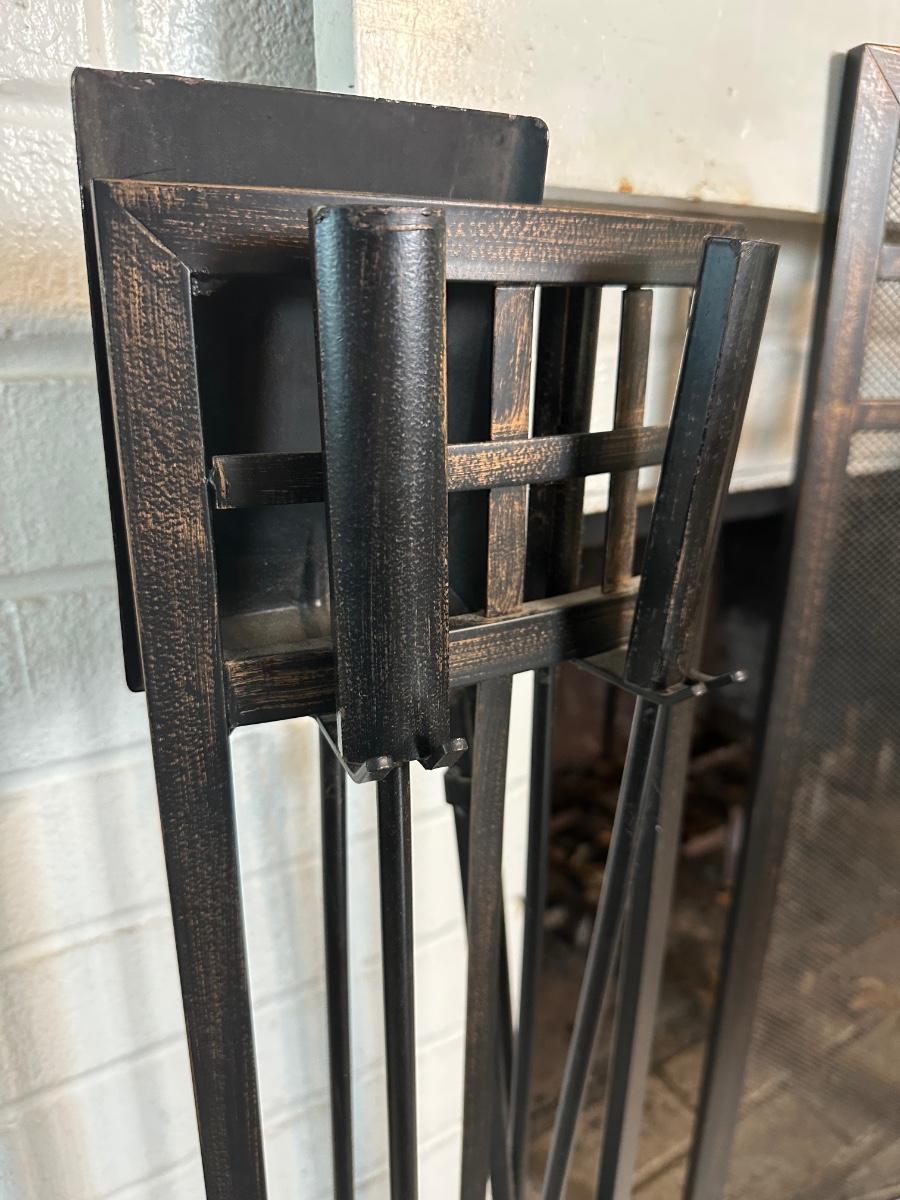 Black Metal Fireplace Screen & Tool Set