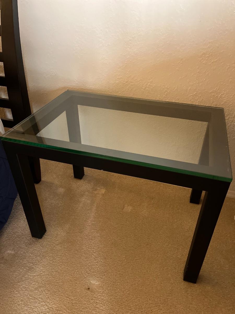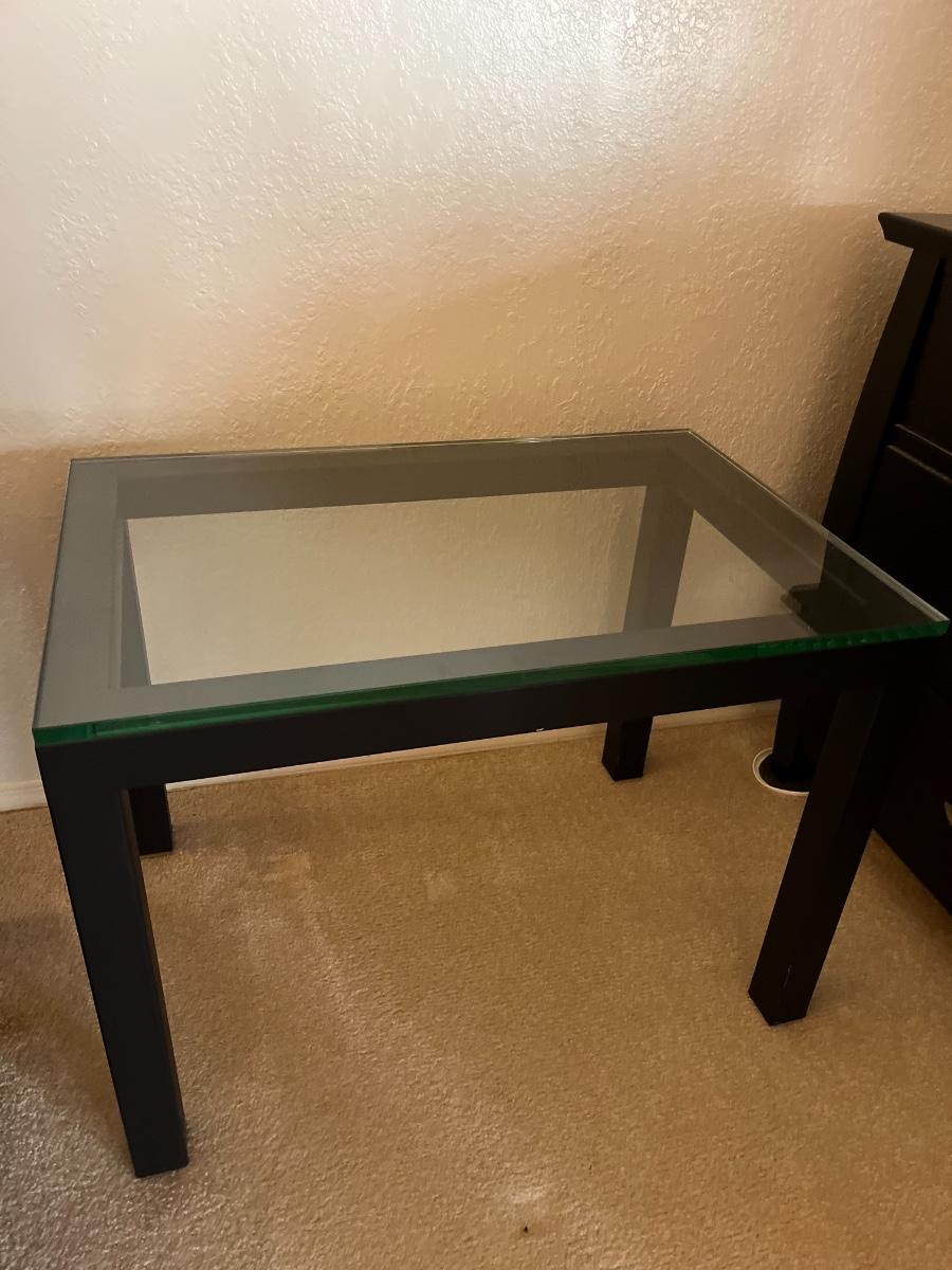 Black Metal Table with Glass Top ( 30” L, 20” W, 22” H)