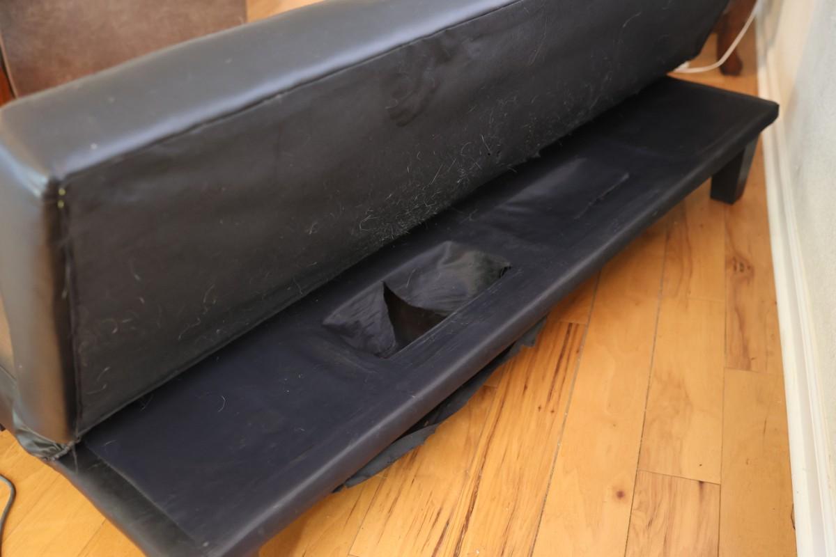 See detailed photos of futon of any wear. Very functional and sleek.
