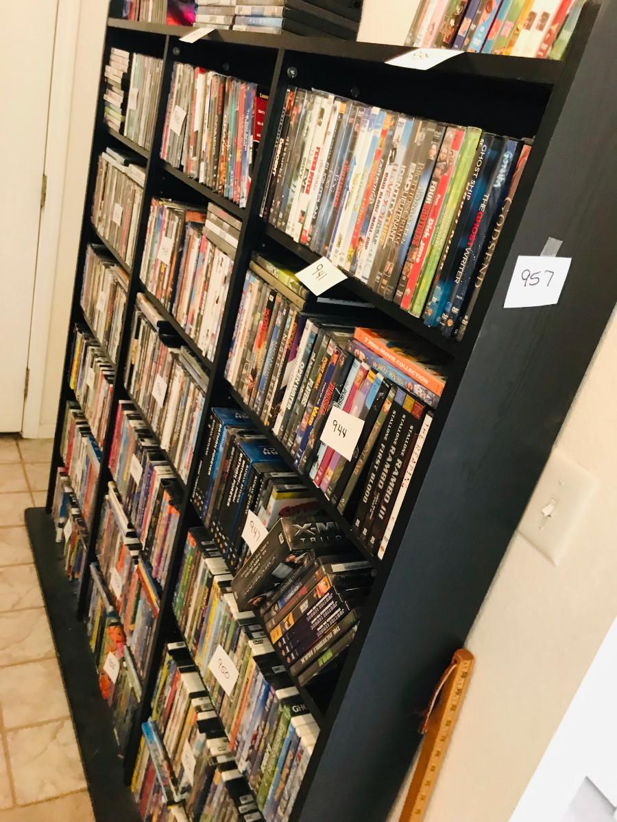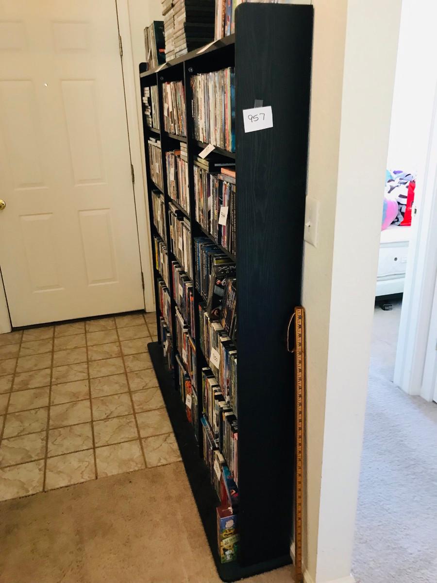 You are buying JUST the Black shelf, as you can see the DVDs are listed on separate lots!