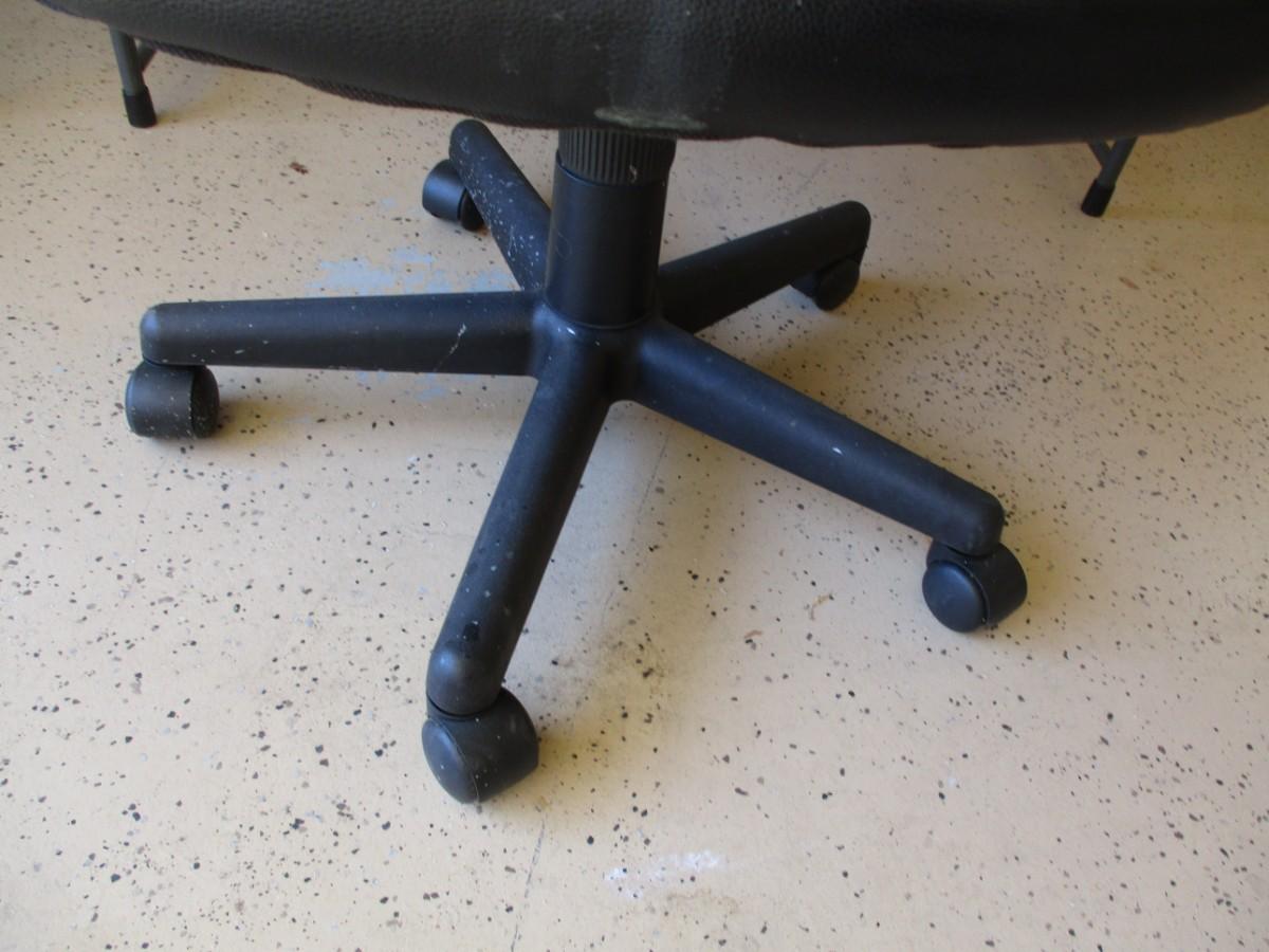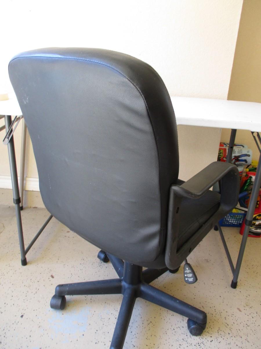 Height adjustment works. No tears. Needs cleaning. Good condition